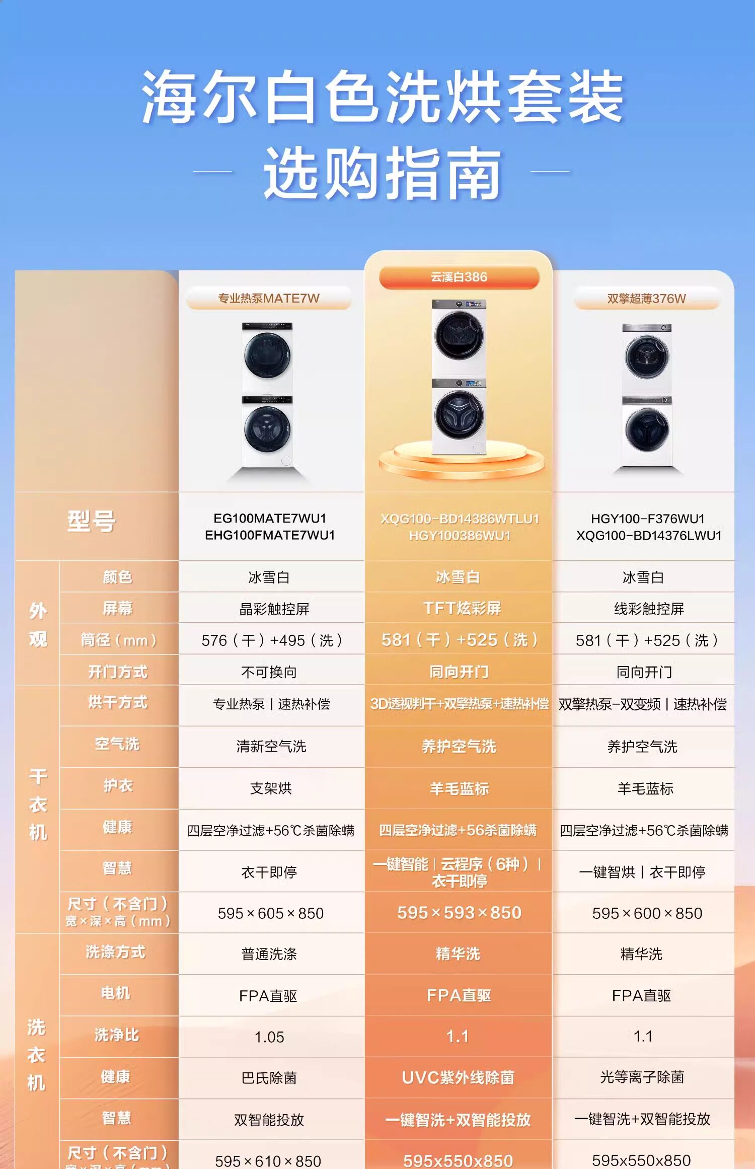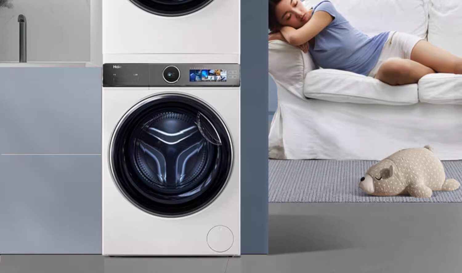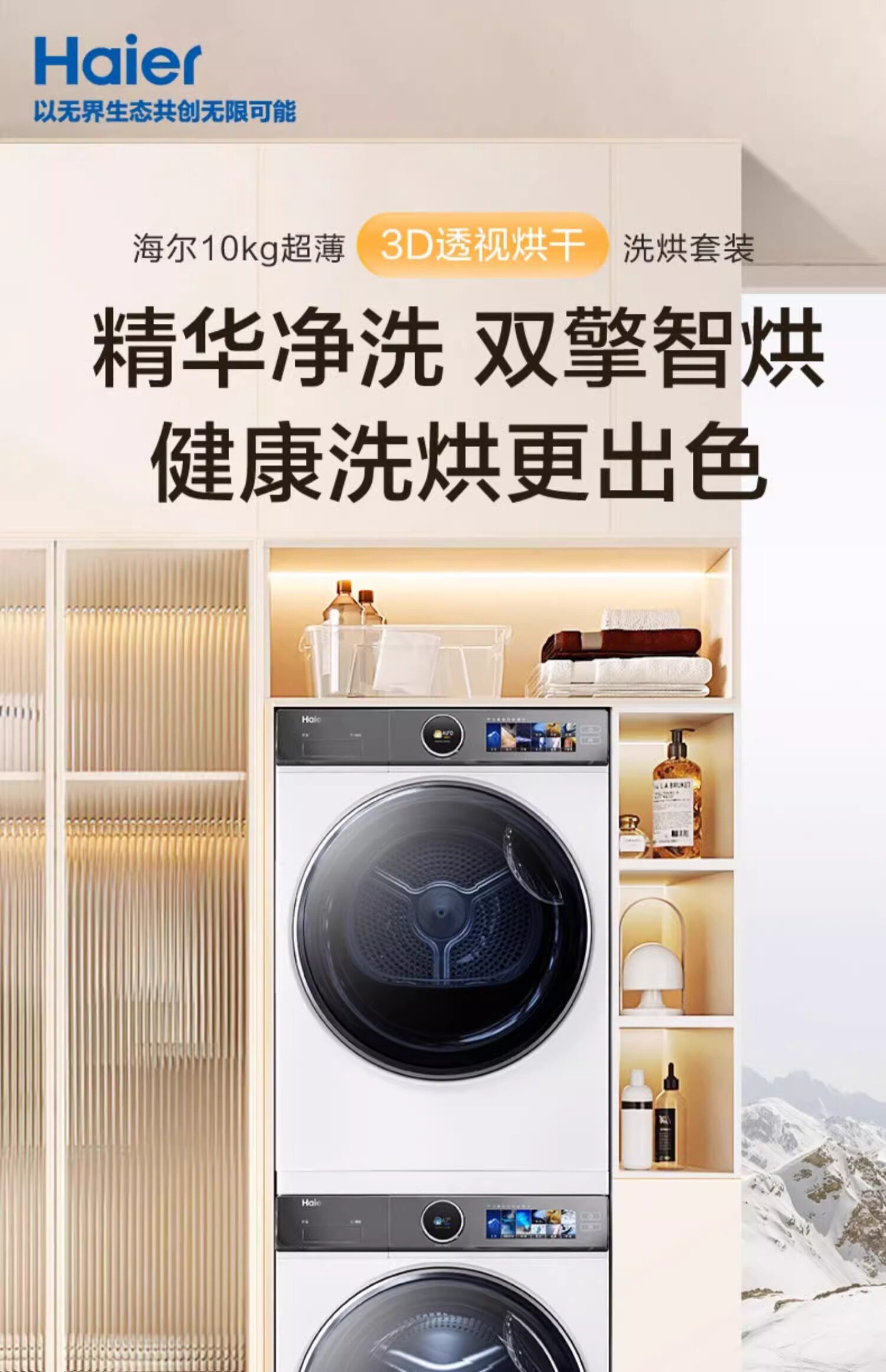 Haier XQG100-BD14386WTLU1+HG Y100F386WU1 white washing and drying set 3D perspective heat pump