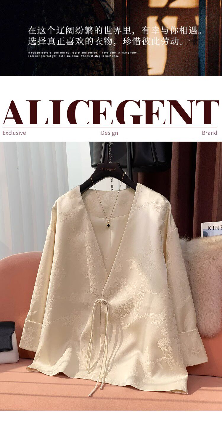 New Chinese-Style National Style V-Neck Jacquard High-End Jacket for Women 2024 Spring and Autumn New Loose Casual Button-Up Top
