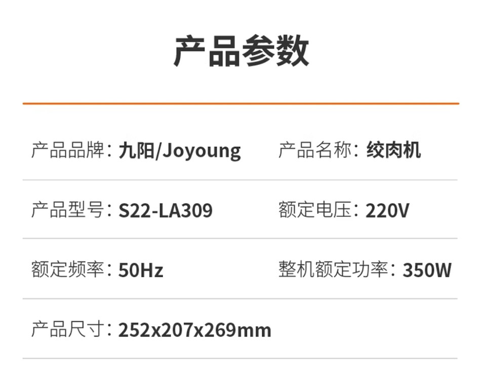 Joyoung S22-LA309 meat grinder household multi-functional two-speed stuffing, vegetable and meat grinder 2.2L