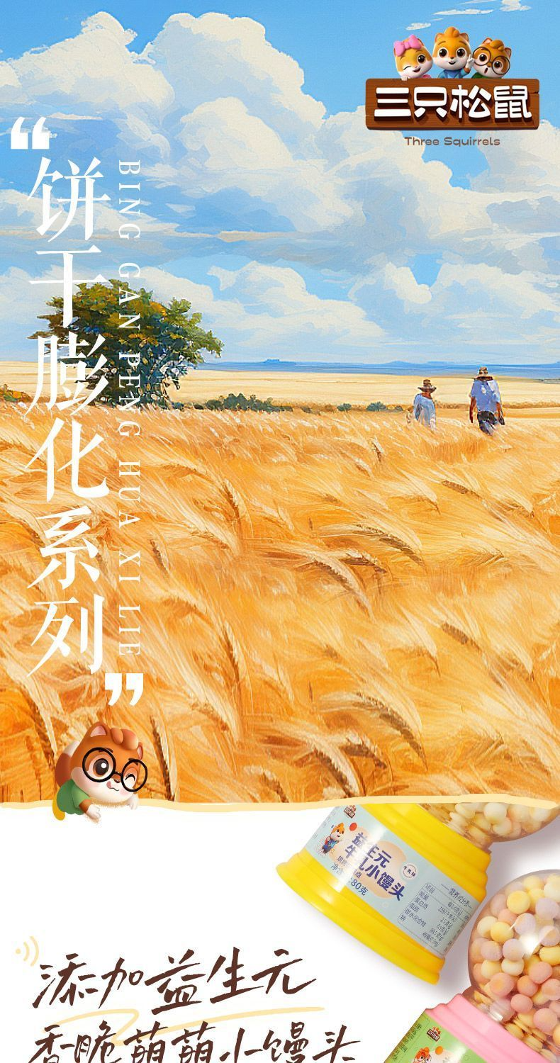 [Three Squirrels_Prebiotic Milk Steamed Buns 80g] Fruit and Vegetable Biscuits to Satisfy Kidsren'S Snack Breakfast