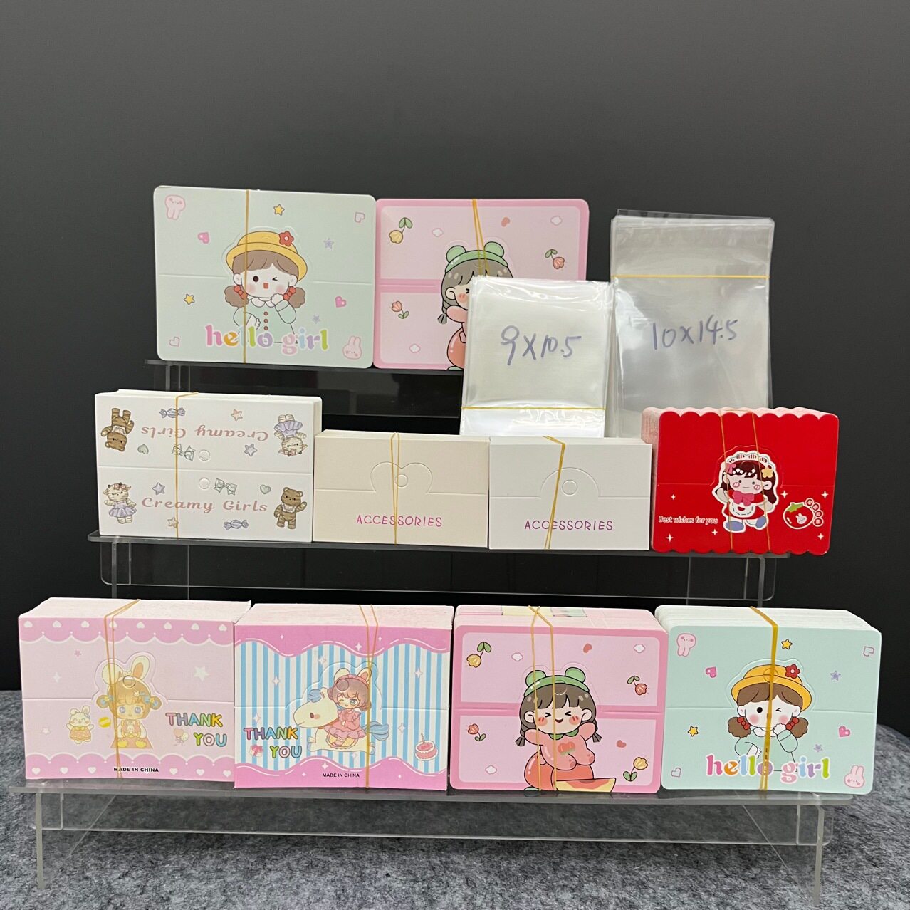 Color Classification Kp1079 Pink Watermelon Girl Large Card (14*11) about 100 Pieces,Kp1080 Hat Girl Large Card (14*11 cm), Approximately 100 Pieces,Kp1013 Panda Card Header (12*8), Approximately 100 Pieces,Kp1018 (10*6) Acc Love Cards, about 100 Pieces,Kp1077 Pink Watermelon Girl Medium Card (10*8 cm), Approximately 100 Pieces,Kp1078 Hat Girl Medium Card (10*8 cm), Approximately 100 Pieces,Kp1075 Big Red Girl Card (10*8) about 100 Pieces,Kp1051 Large Rabbit Ears Girl Card (10*8) about 100 Pieces,Kp1050 Large Striped Equestrian Girl Card (10*8 cm), Approximately 100 Pieces,About 9*10.5 Bags, about 100 Sheets,Kp736Acc White Card (9*6) about 100 Pieces,Kp736Acc White Cards (9*6) + Bags, about 100 Pieces Each,Kp1013 Panda (12*8) Header Card + Bag, Approximately 100 Pieces Each,Kp1050 Striped Riding Girl (10*8) Card + Bag,Kp1018 (10*6) Acc Love Cards + Bags, about 100 Pieces Each,Kp1075 Large Red Girl Card (10*8) + Bag, Approximately 100 Pieces Each,Kp1051 Rabbit Ears Girl Card (10*8) + Bag,Kp1077 Pink Watermelon Girl Medium Card (10*8) + Bag, Approximately 100 Pieces Each,Kp1078 Hat Girl Medium Card (10*8) + Bag, Approximately 100 Pieces Each,Approximately 100 Flat Poly Bags, Size Around 14cm X 16cm,About 10*14.5 Flat Pockets, about 100 Pieces