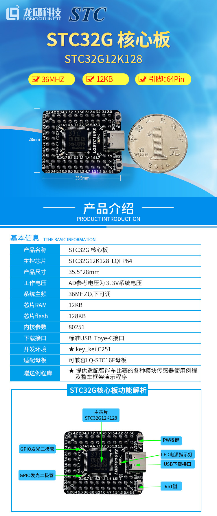 Stc32G12K128 Core Board Smart Car Electromagnetic Set Air Cushion Boat Main Control Board Long Qiu Technology
