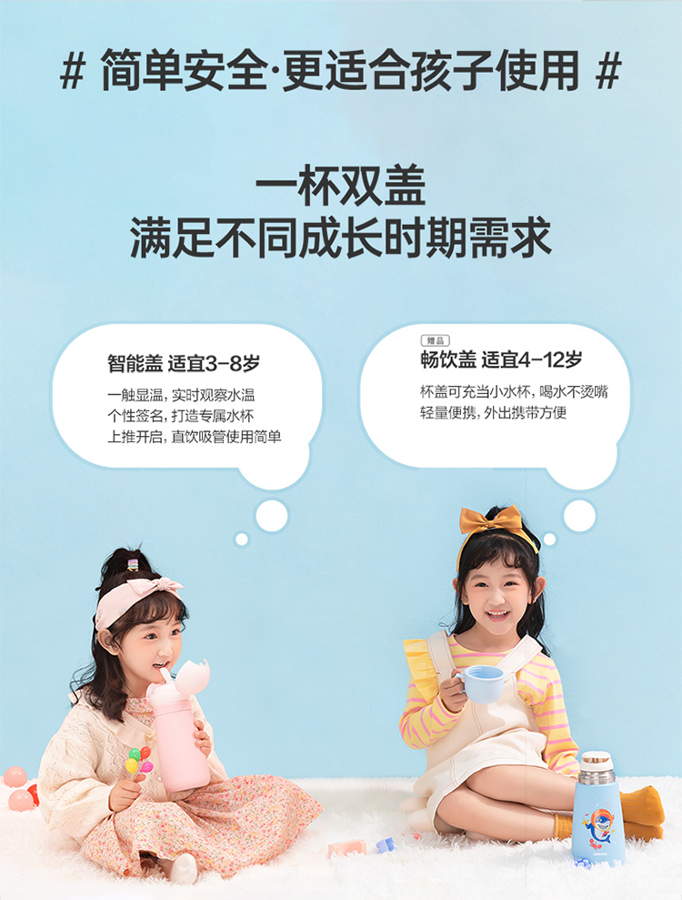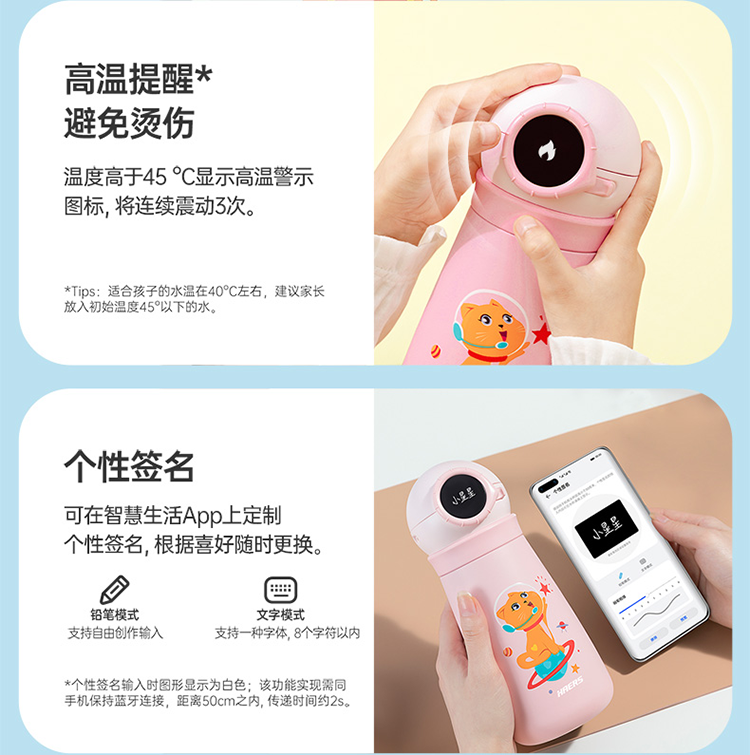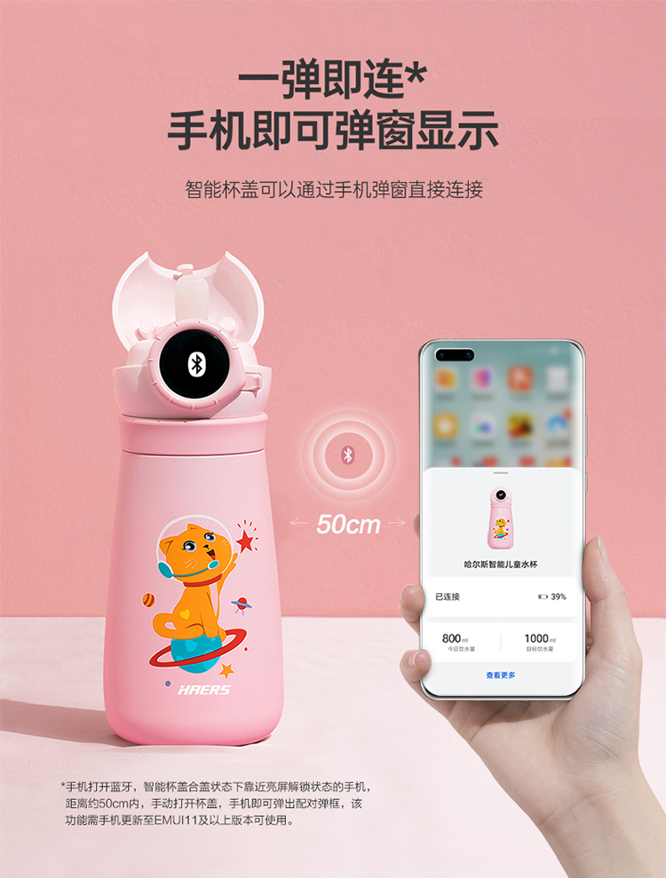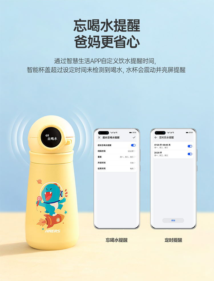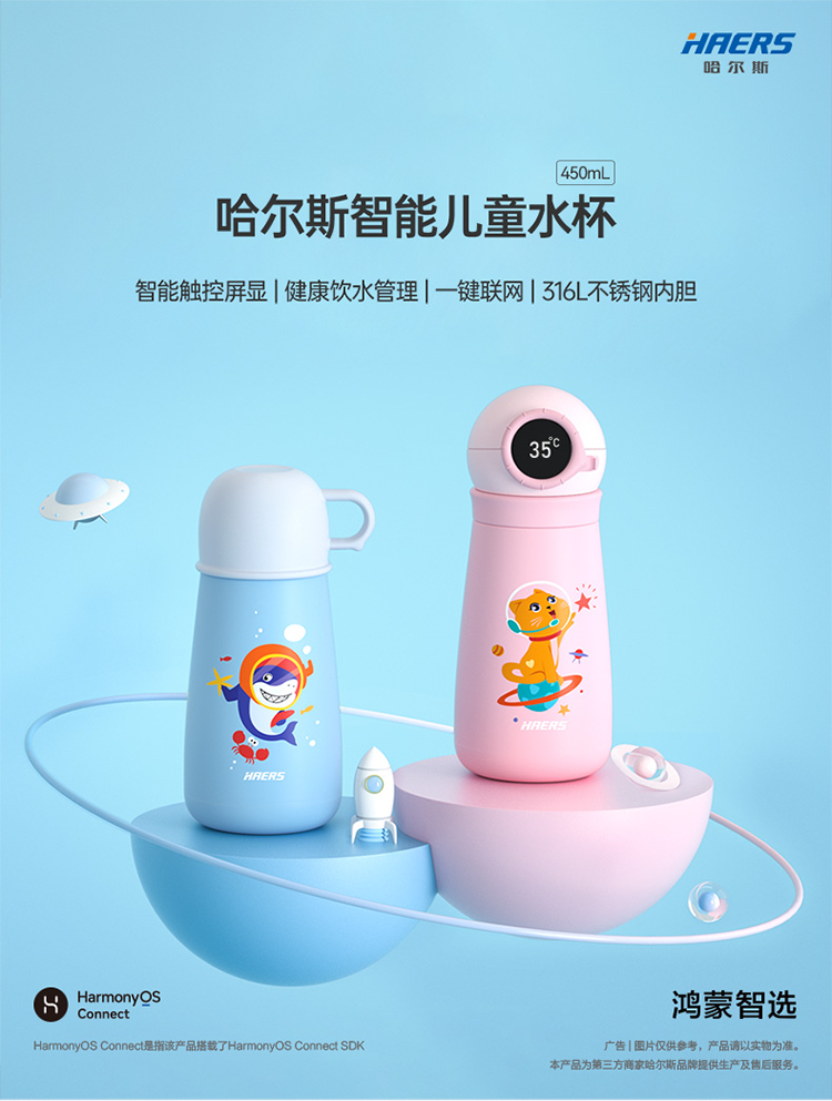 Hongmeng Smart Selection Hals Intelligent Children's Insulated Cup 450ml with Straw, Antibacterial Water Bottle for Boys and Girls, Birthday Gift