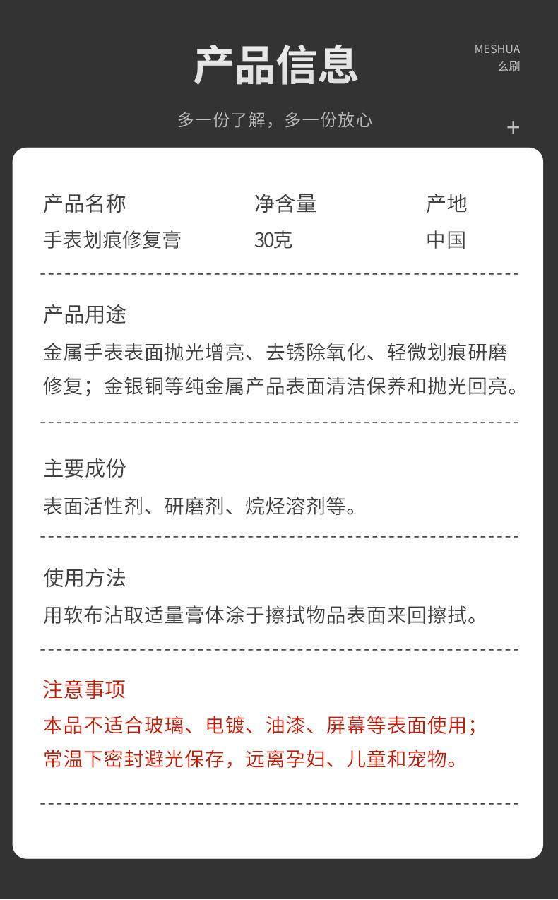 Sort by color Watch scratch repair cream (naked),Watch scratch repair paste (naked) + wiping cloth + fine sandpaper,Metal grinding and polishing paste (upgraded formula),Metal grinding and polishing paste (upgraded formula) + wiping cloth + fine sandpaper