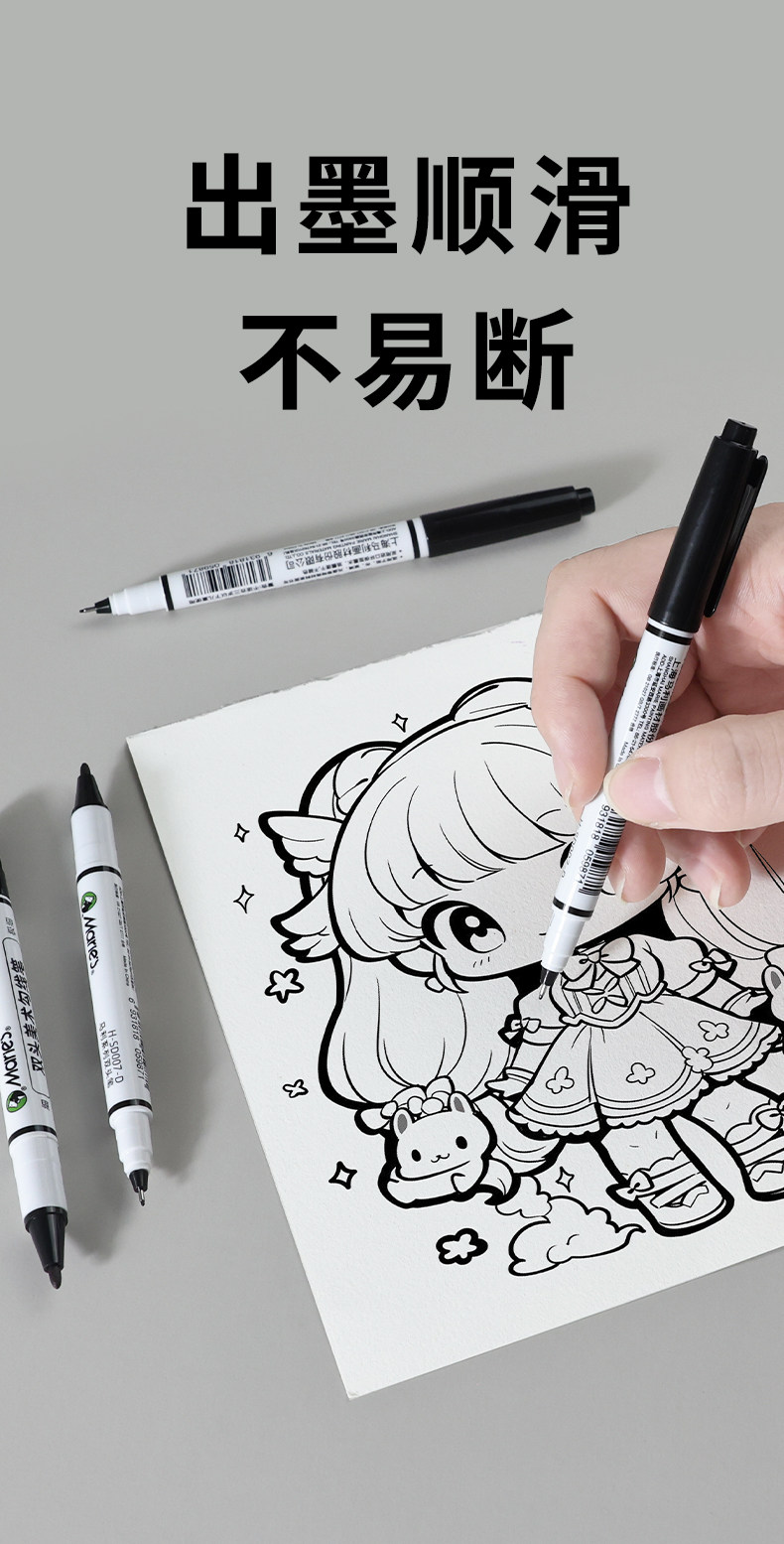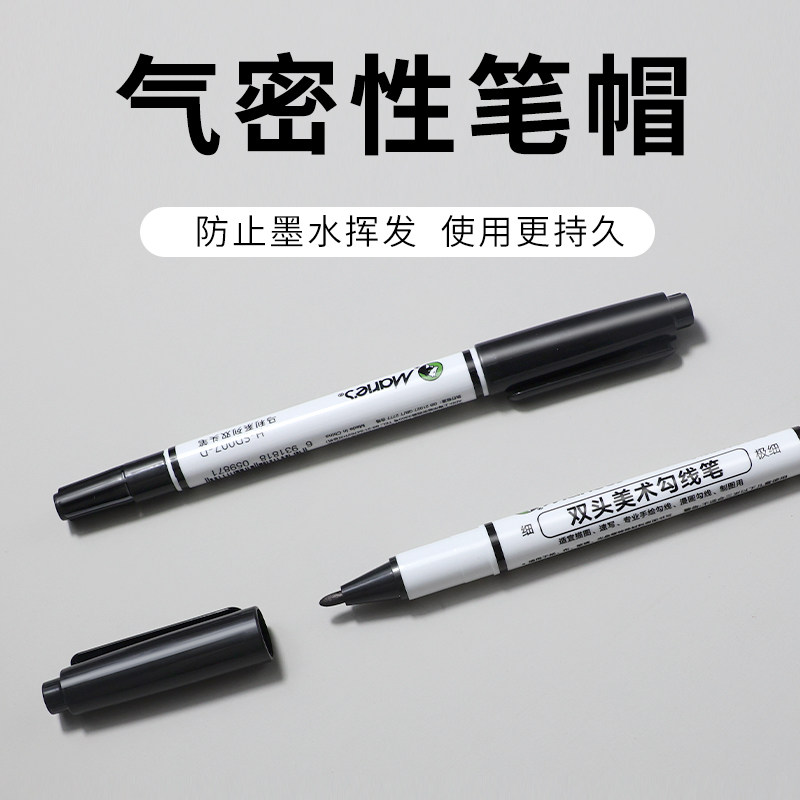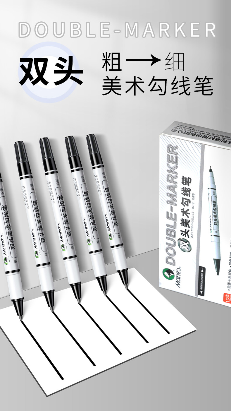 Marley Brand Professional Double-Headed Art Hook Pen Black Oily Primary School Students Kindergarten Kidsren's Stroke Painting Pen Chinese Painting Mark Stroke Quick-Drying Hook Pen Thick and Thin Two-Headed Marker Pen