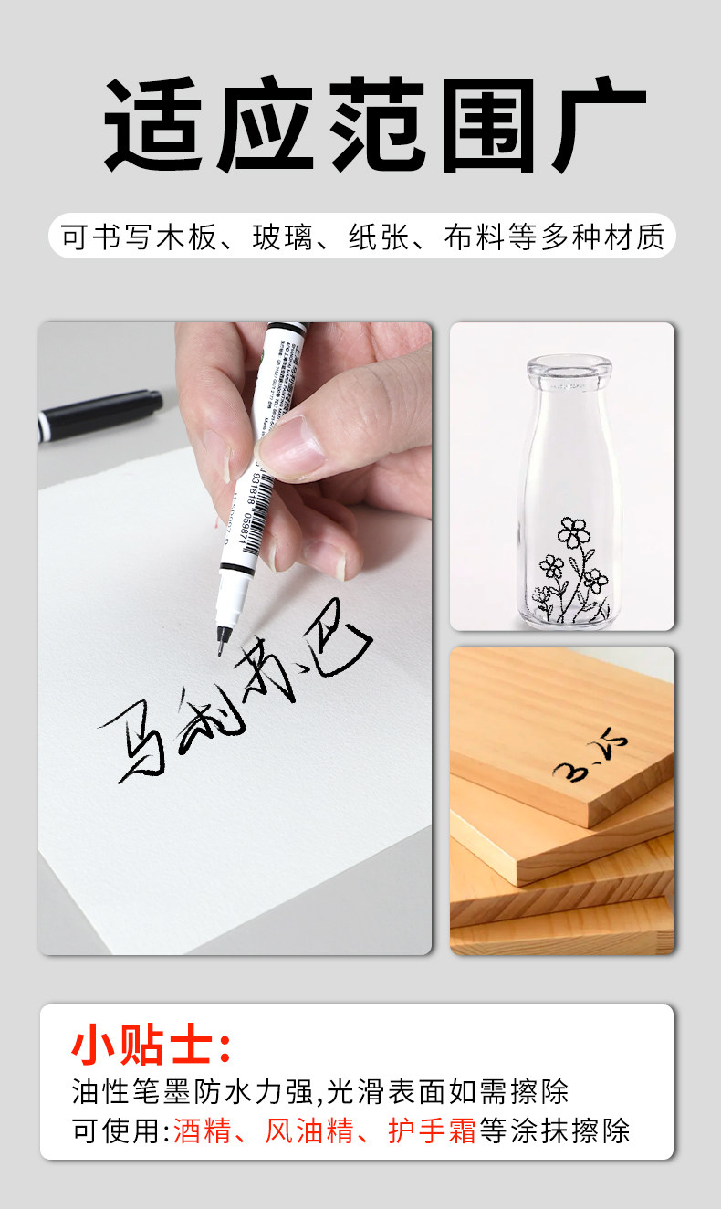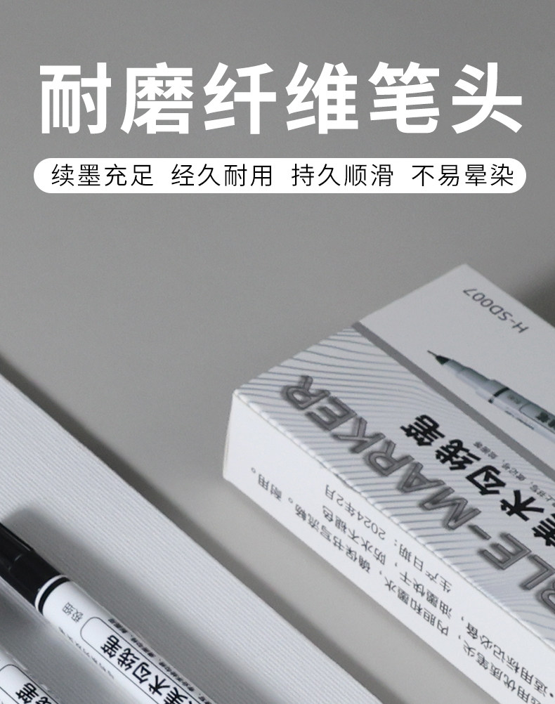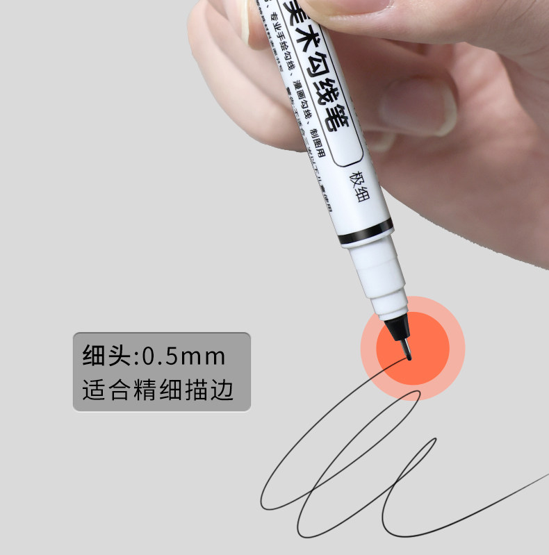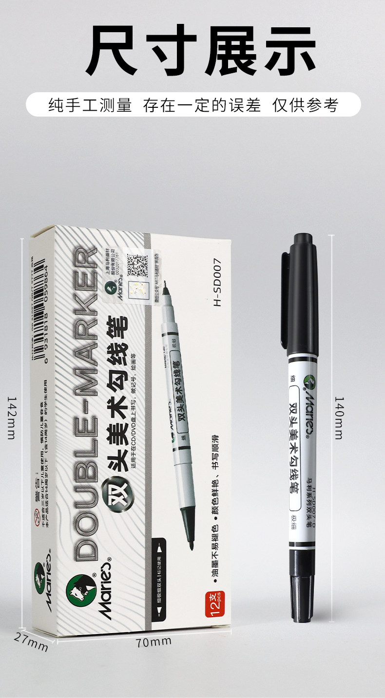 Marley Brand Professional Double-Headed Art Hook Pen Black Oily Primary School Students Kindergarten Kidsren's Stroke Painting Pen Chinese Painting Mark Stroke Quick-Drying Hook Pen Thick and Thin Two-Headed Marker Pen