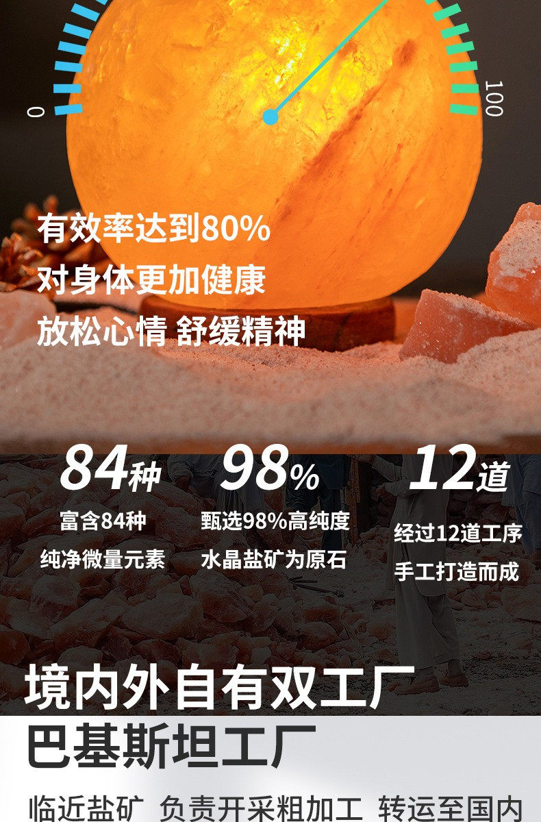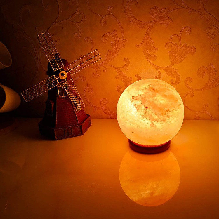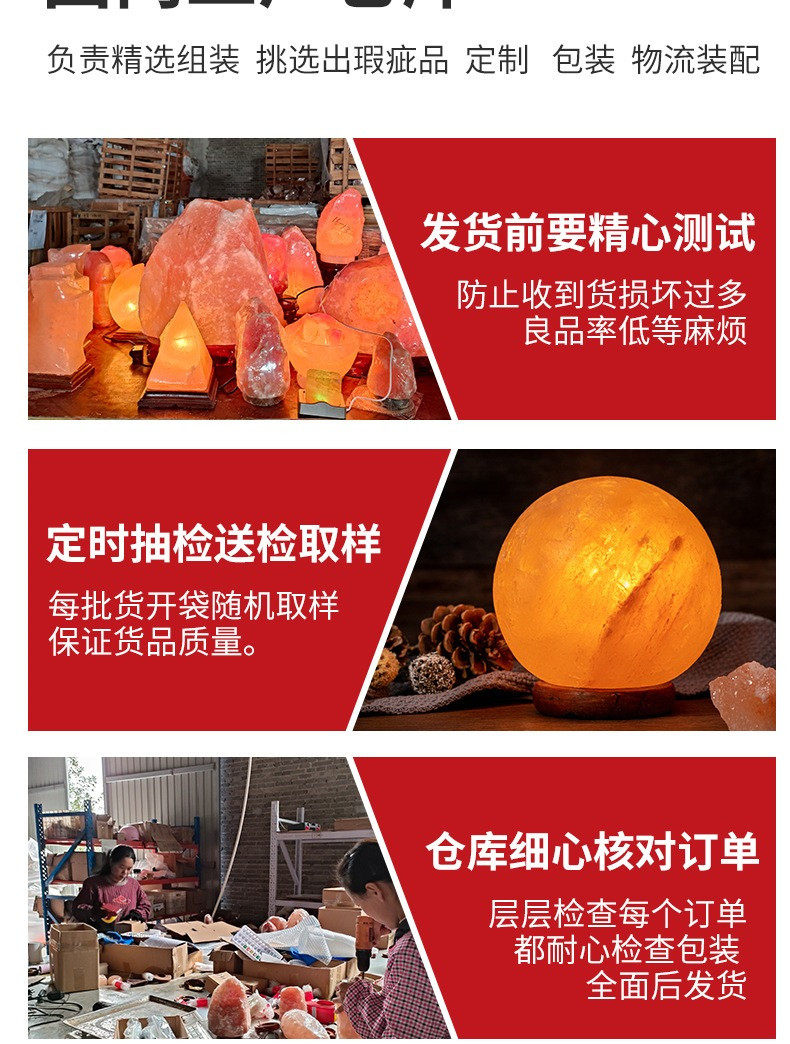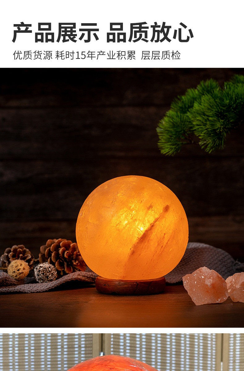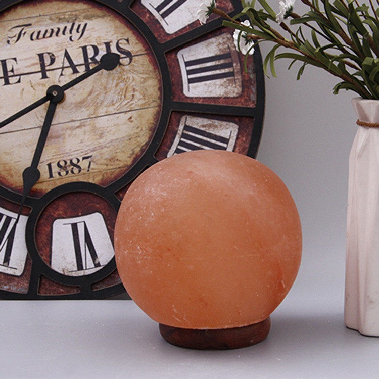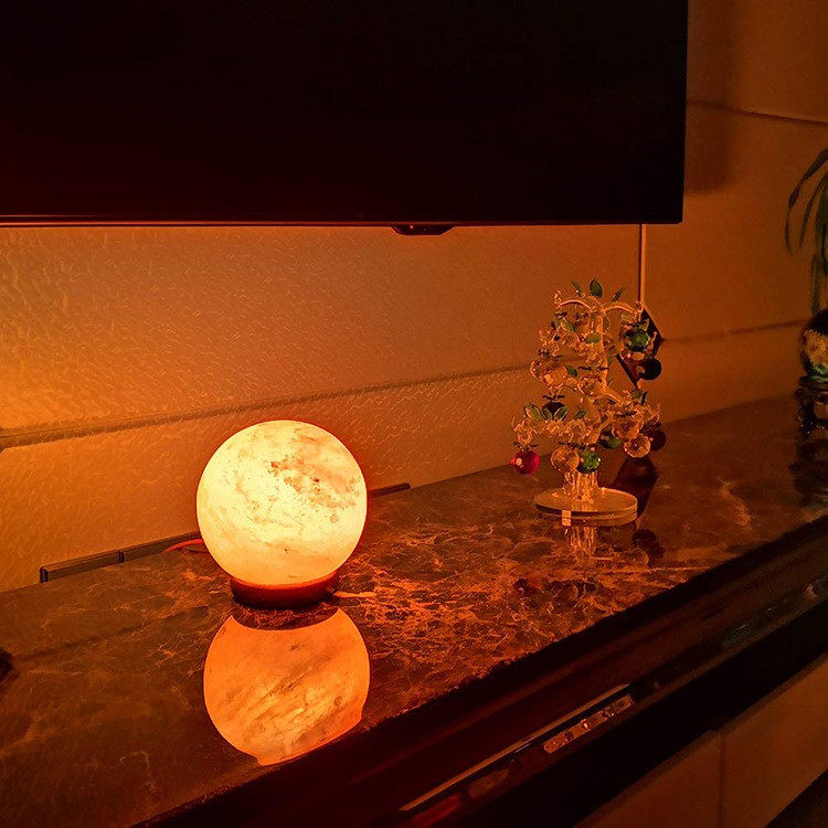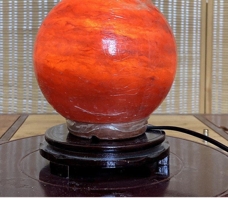 Natural Red Salt Lamp Himalayan Spherical Crystal Lamp Ornament Feng Shui Table Lamp Everlasting Light Fortune-Attracting Night Light