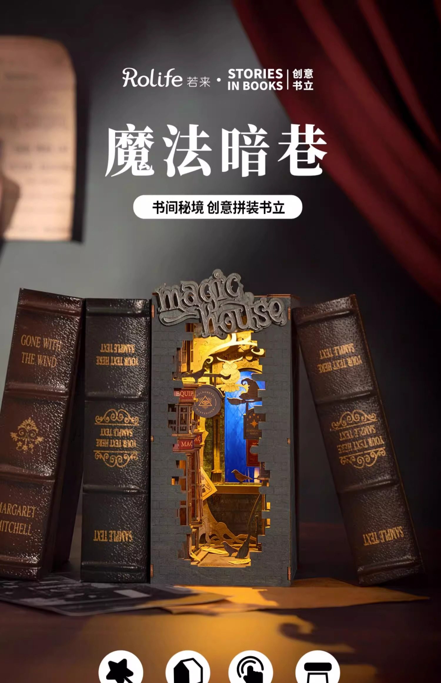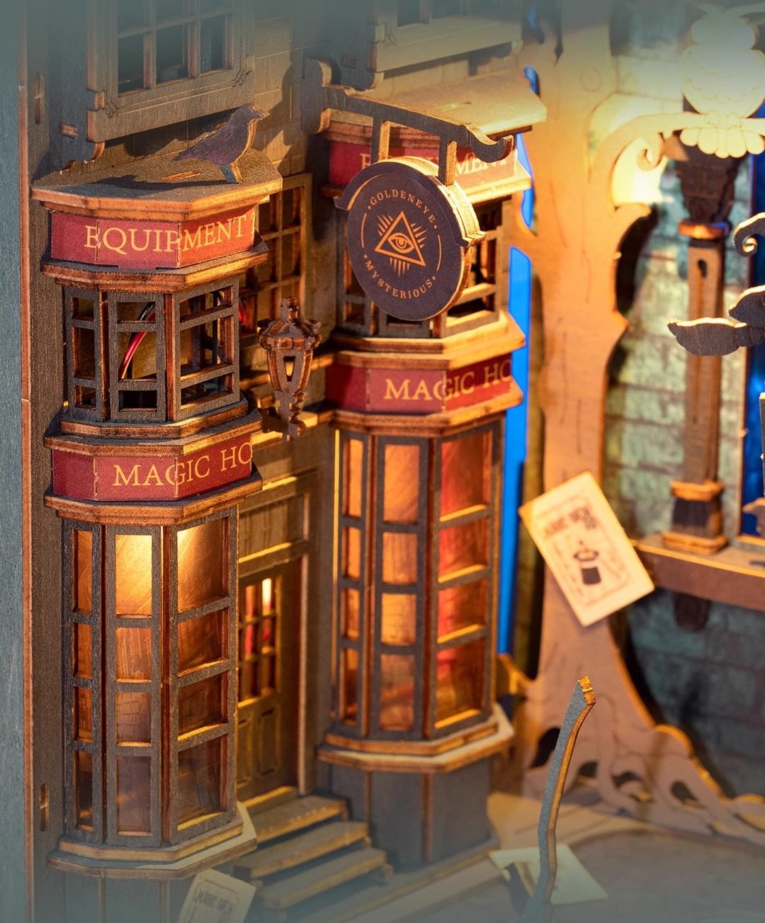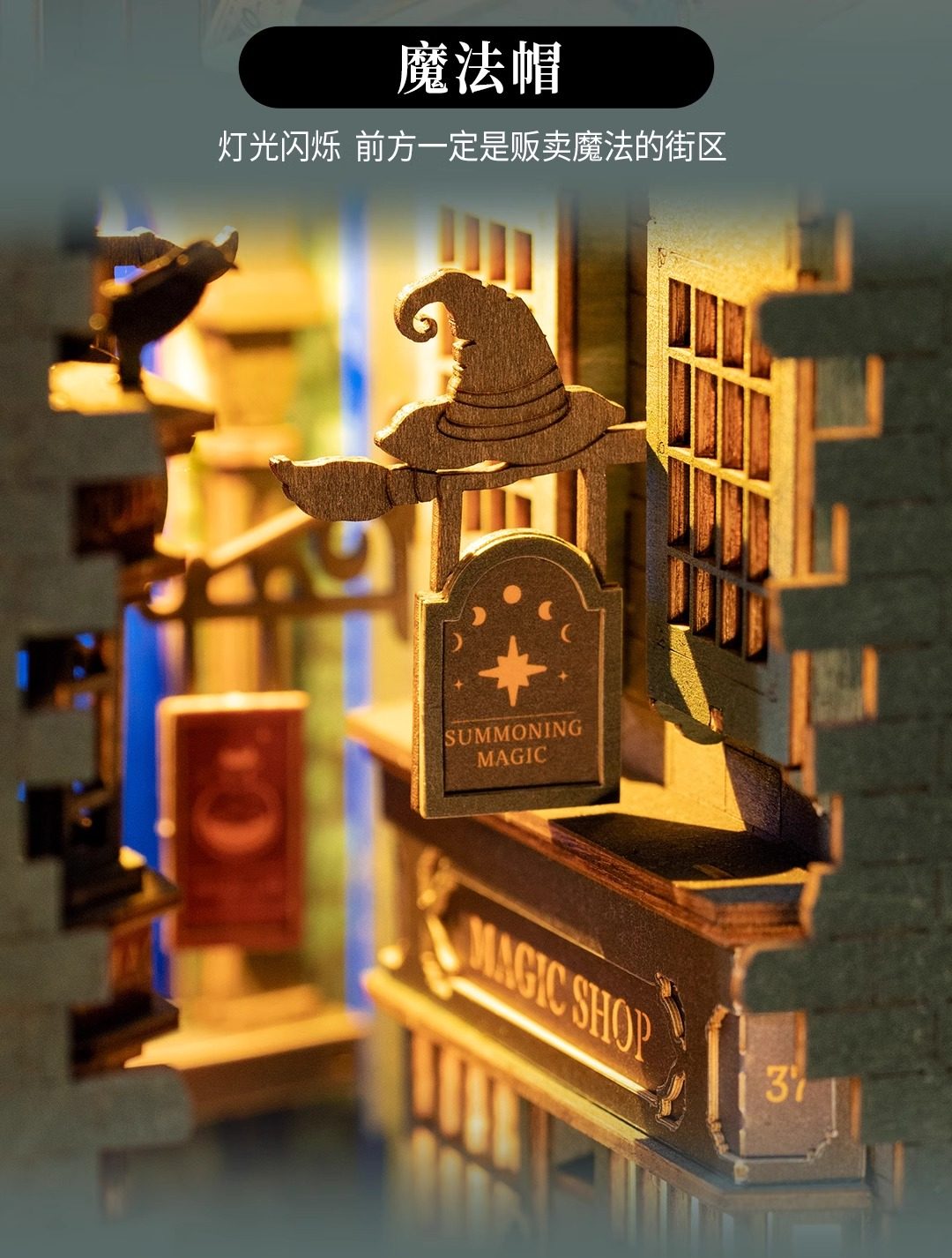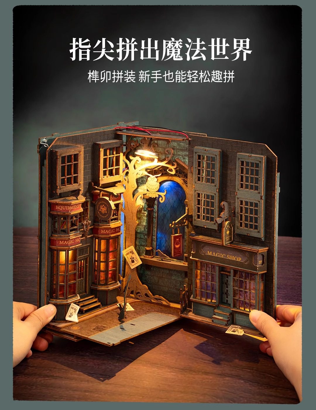 Ruolai Magic Alley Assembled Bookend Harry Potter Wooden Puzzle 3D Desktop Creative Ornament Gift