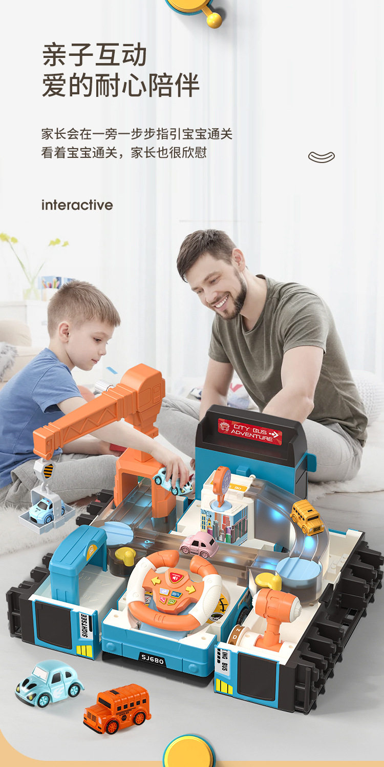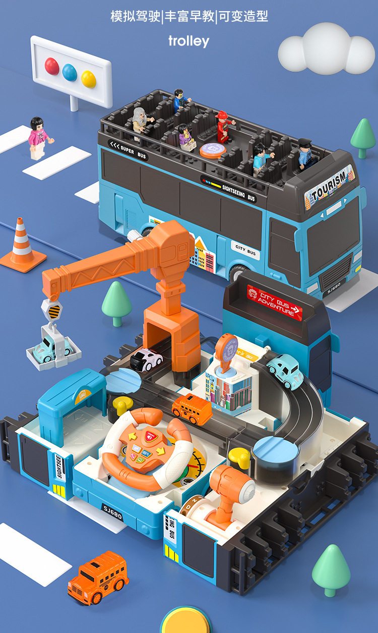 New Boys' Educational Transforming Bus Baby Adventure Toy Car with Steering Wheel Multi-Functional Small Car