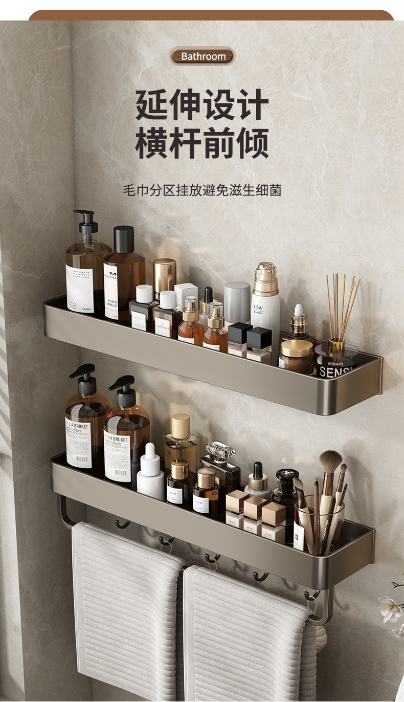 German High-End Bathroom Storage Rack, No-Drill Bathroom Organizer, Multifunctional Wall-Mounted Washbasin Supplies Shelf