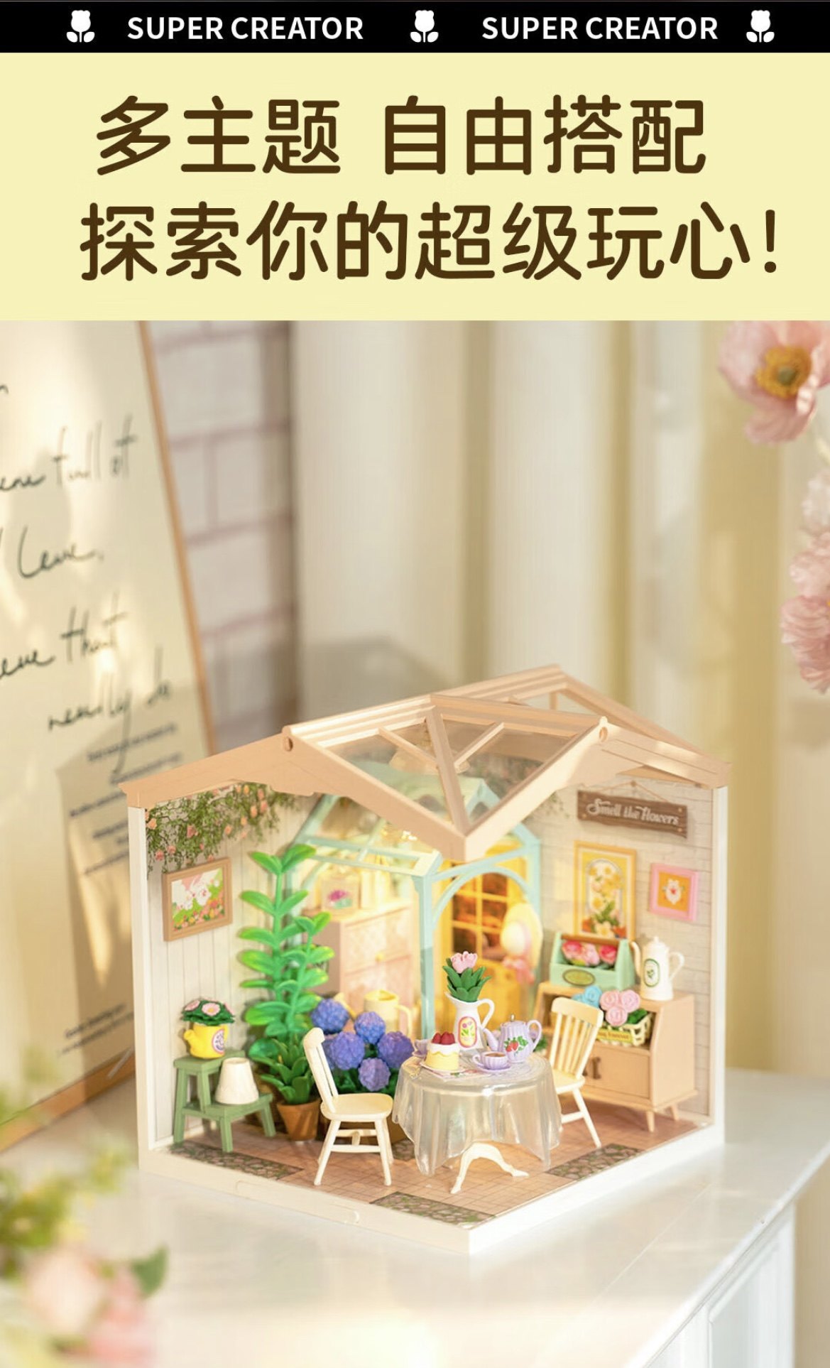 Ruolai Super World New Product Chuying Tea House Taking a Break Between Flowers Handmade DIY Model House Creative Gifts