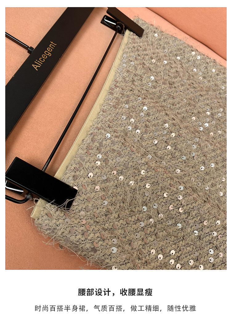 French-Style Sequin Long Skirt for Women, 2024 Summer New Fashion High-Waisted Slimming Elegant Slit Bodycon Skirt