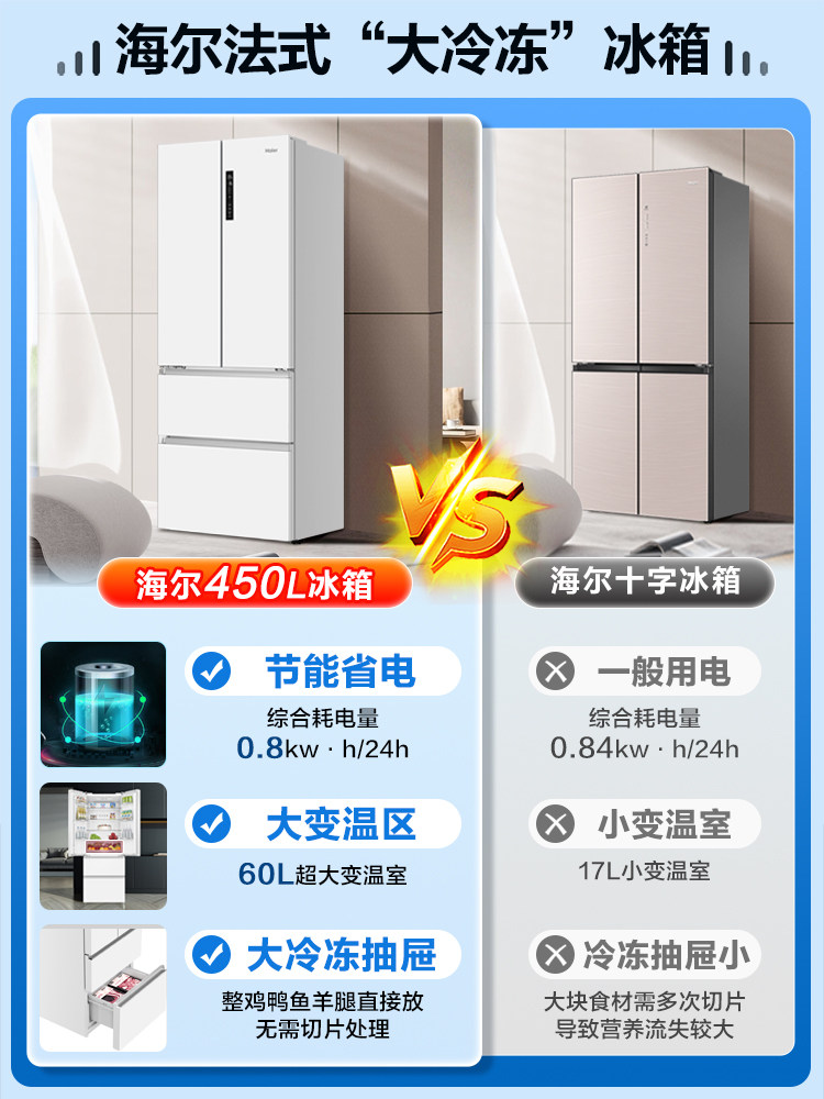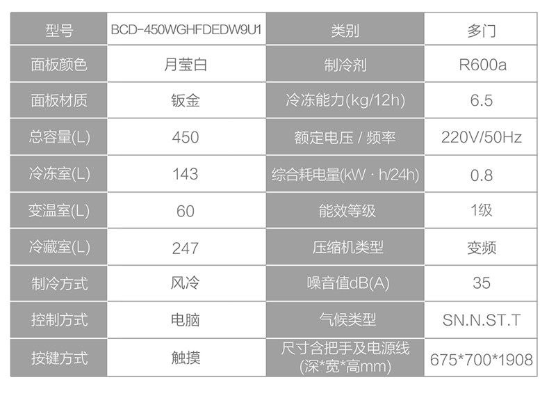 Haier Refrigerator French Multi-Door White First-Class Frequency Conversion Air-Cooled Frost-Free Embedded Bcd-450Wghfdedw9U1