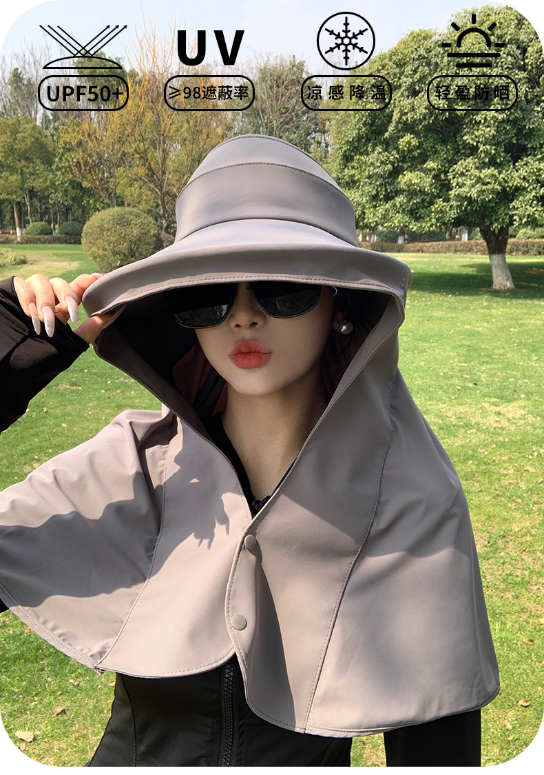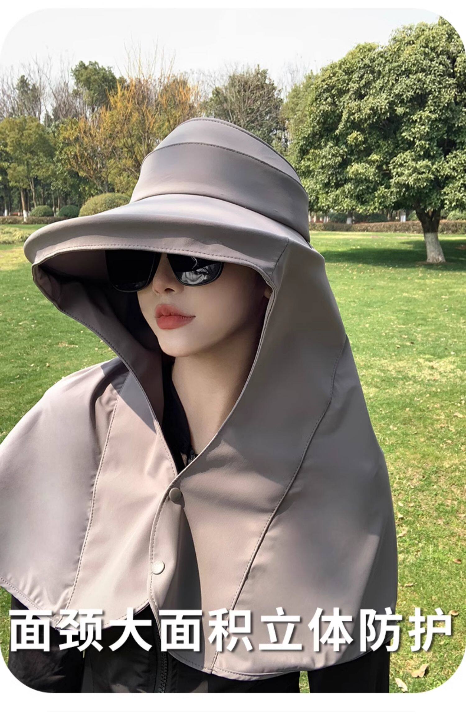 Summer Sun Protection Hat for Women with Large Brim, Anti-Uv Sunshade Shawl Hat, Outdoor Neck Protection, Face Covering, Fisherman Hat, Foldableable and Trendy