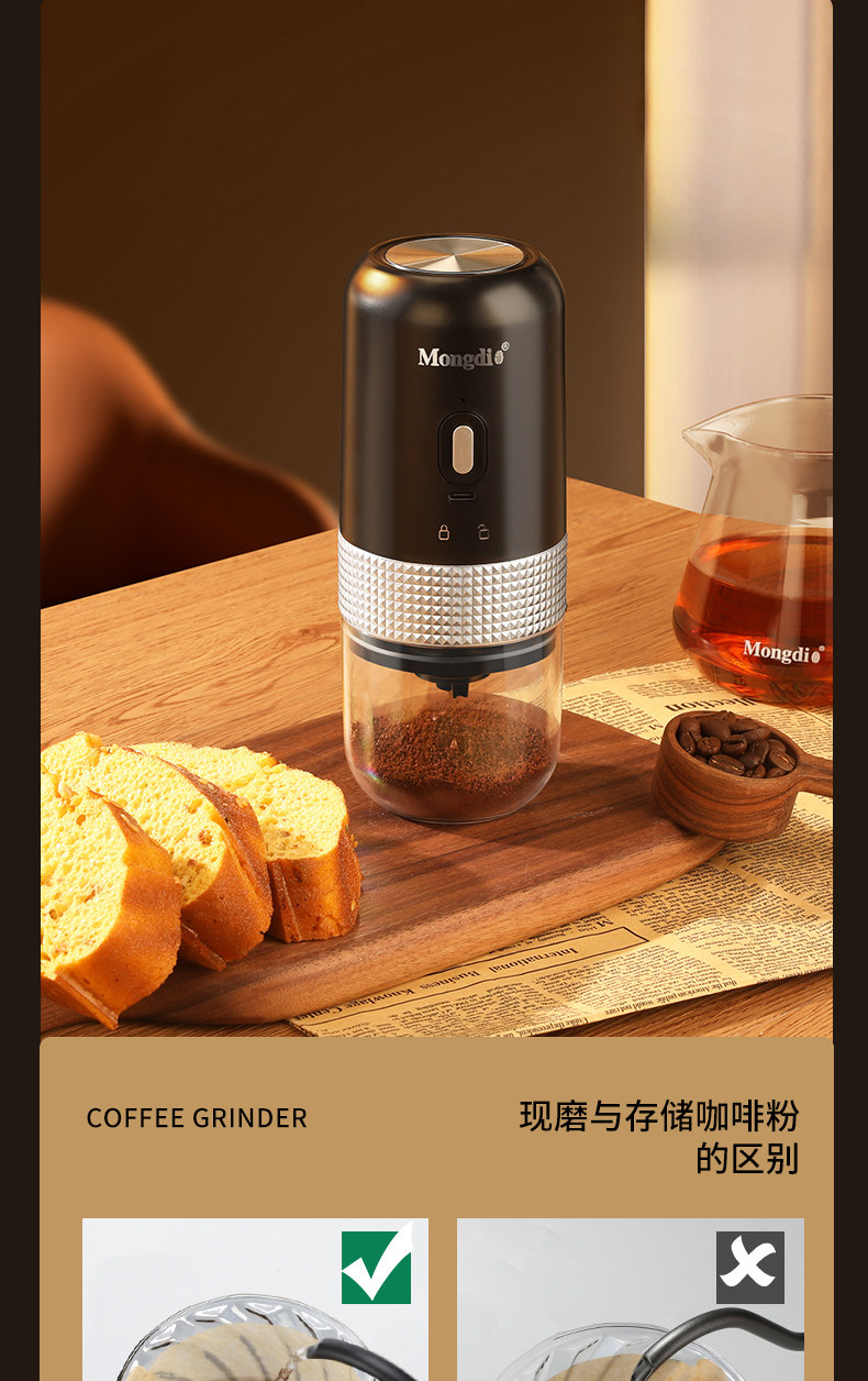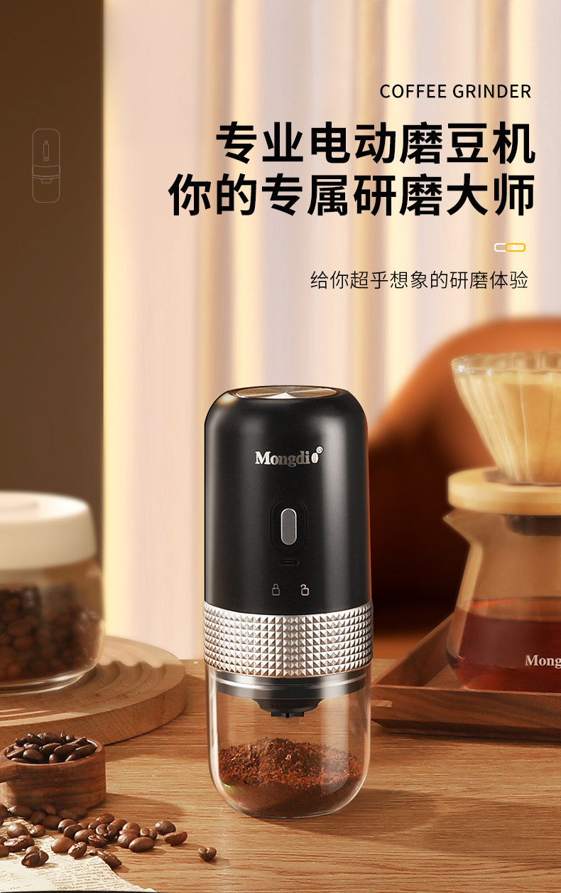 Mongdio Electric Bean Grinder, Small Household Coffee Bean Grinder, Portable Grinder, Automatic Grinding