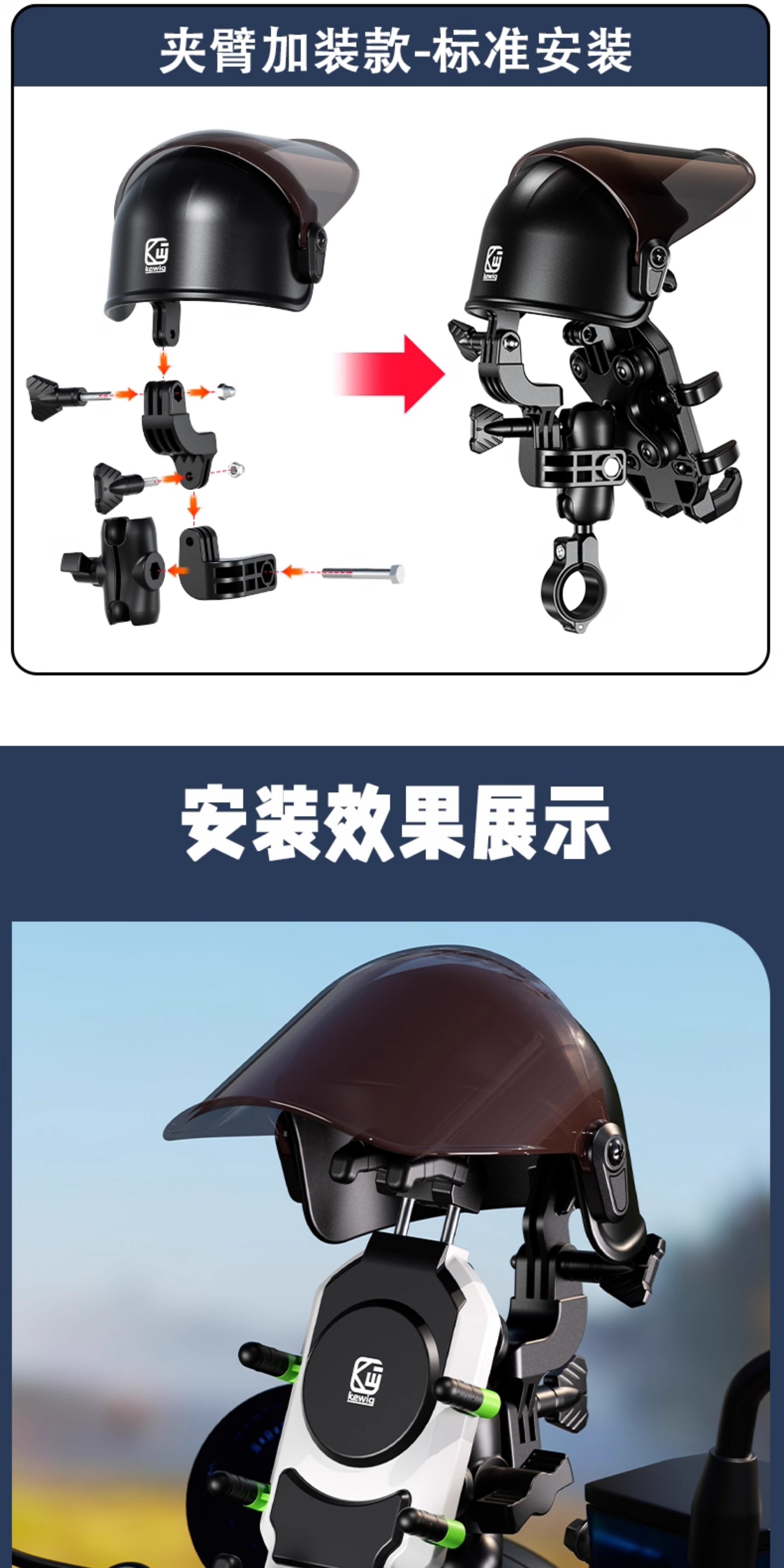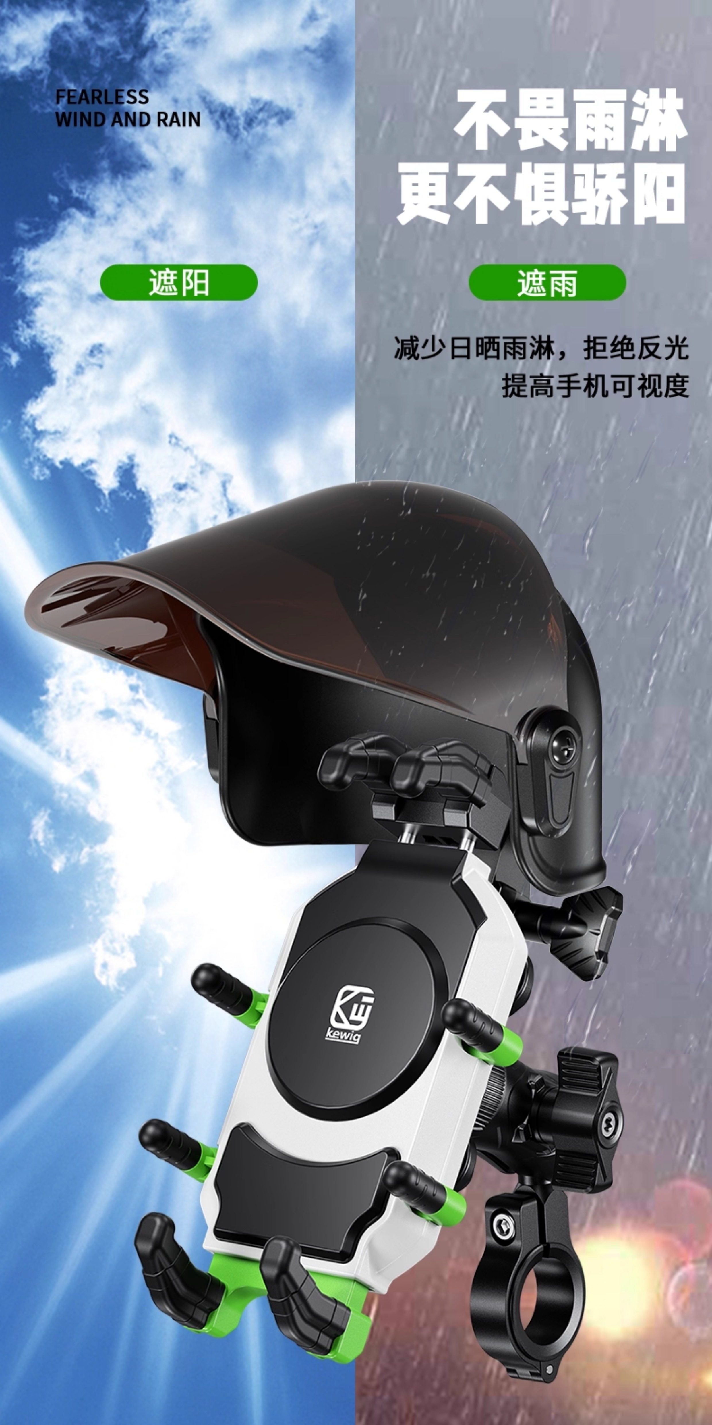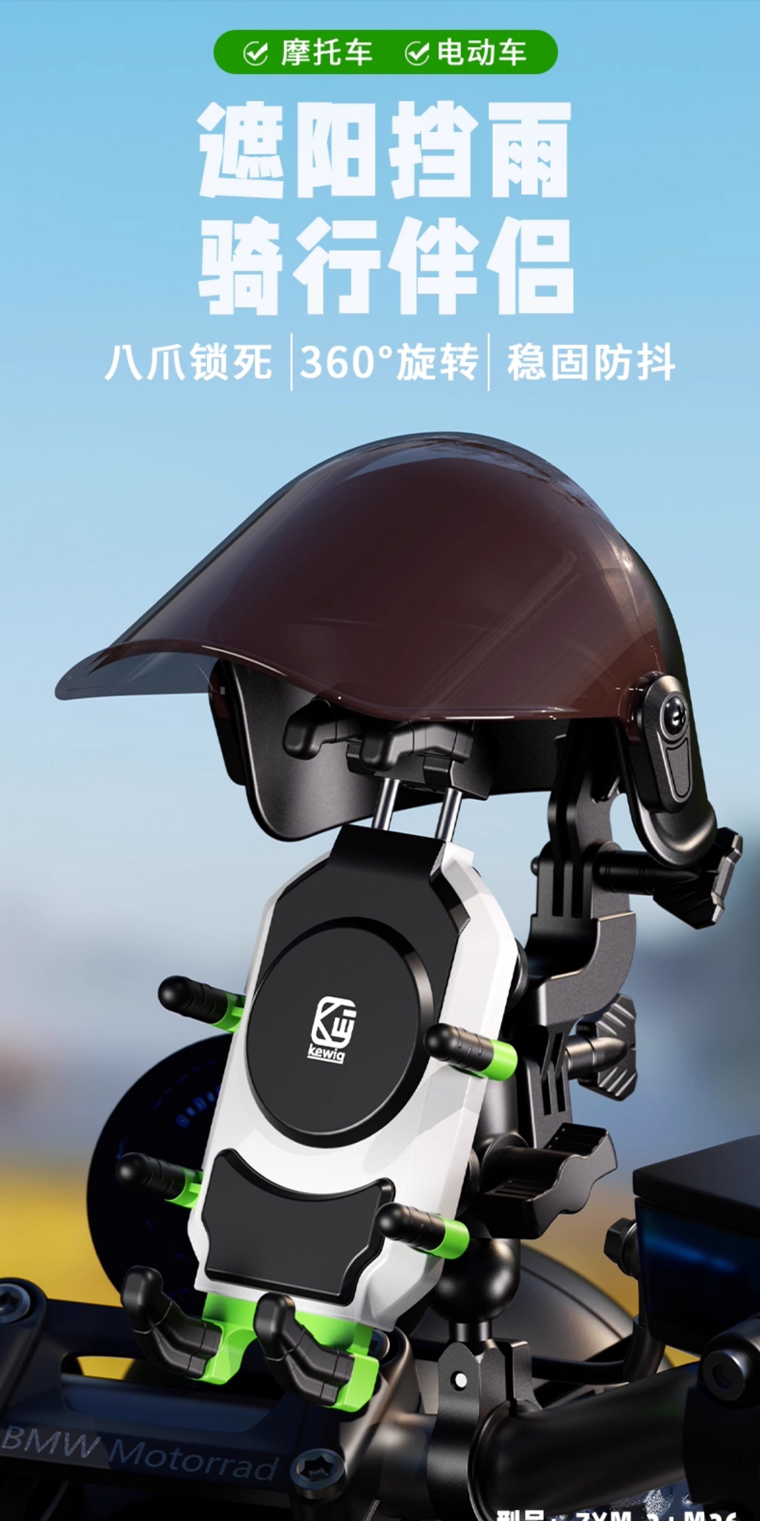 Kewig Motorcycle Mobile Navigation Stand Shock Absorbing Takeaway Riding Electric Vehicle Stand Rain Sun Hat
