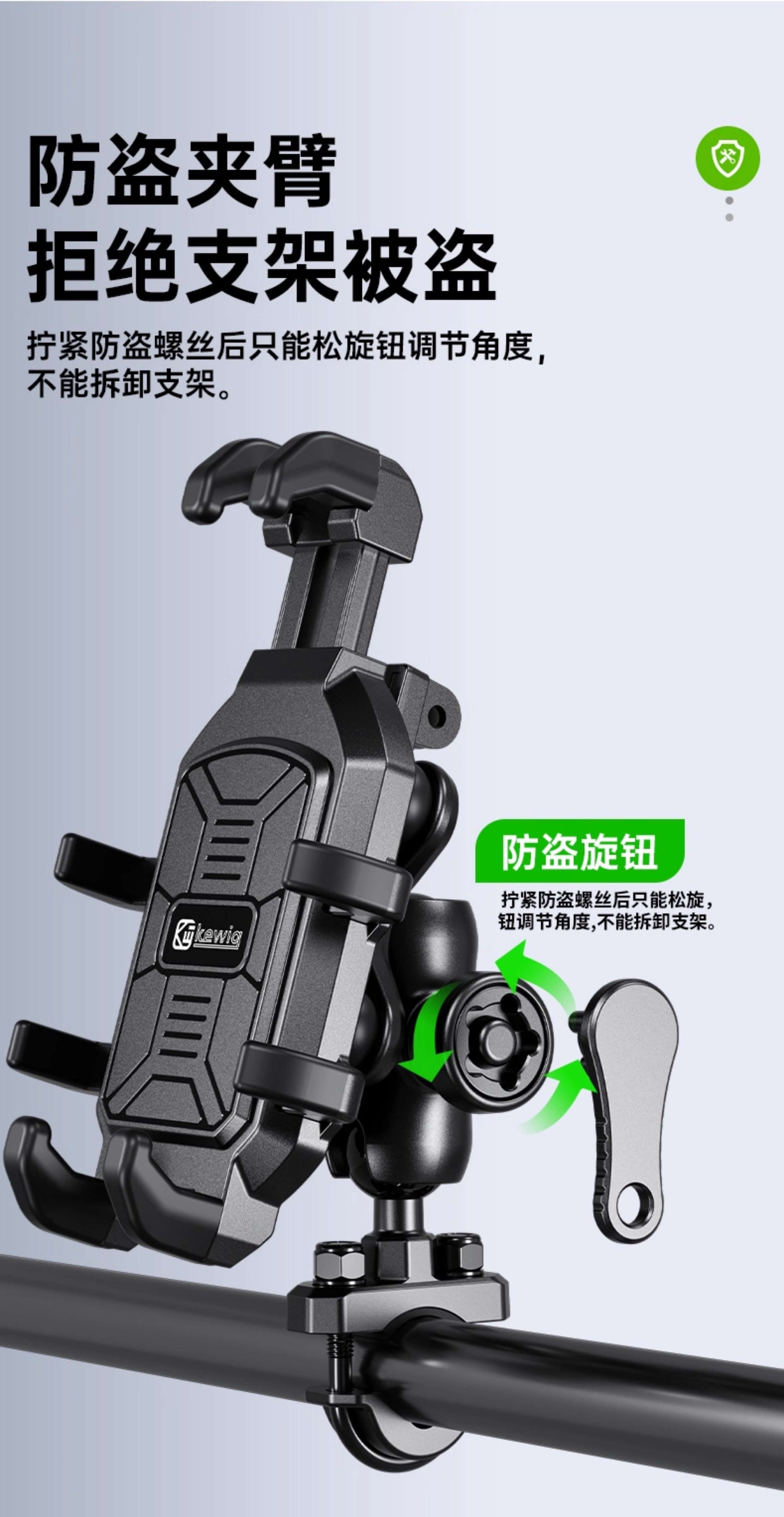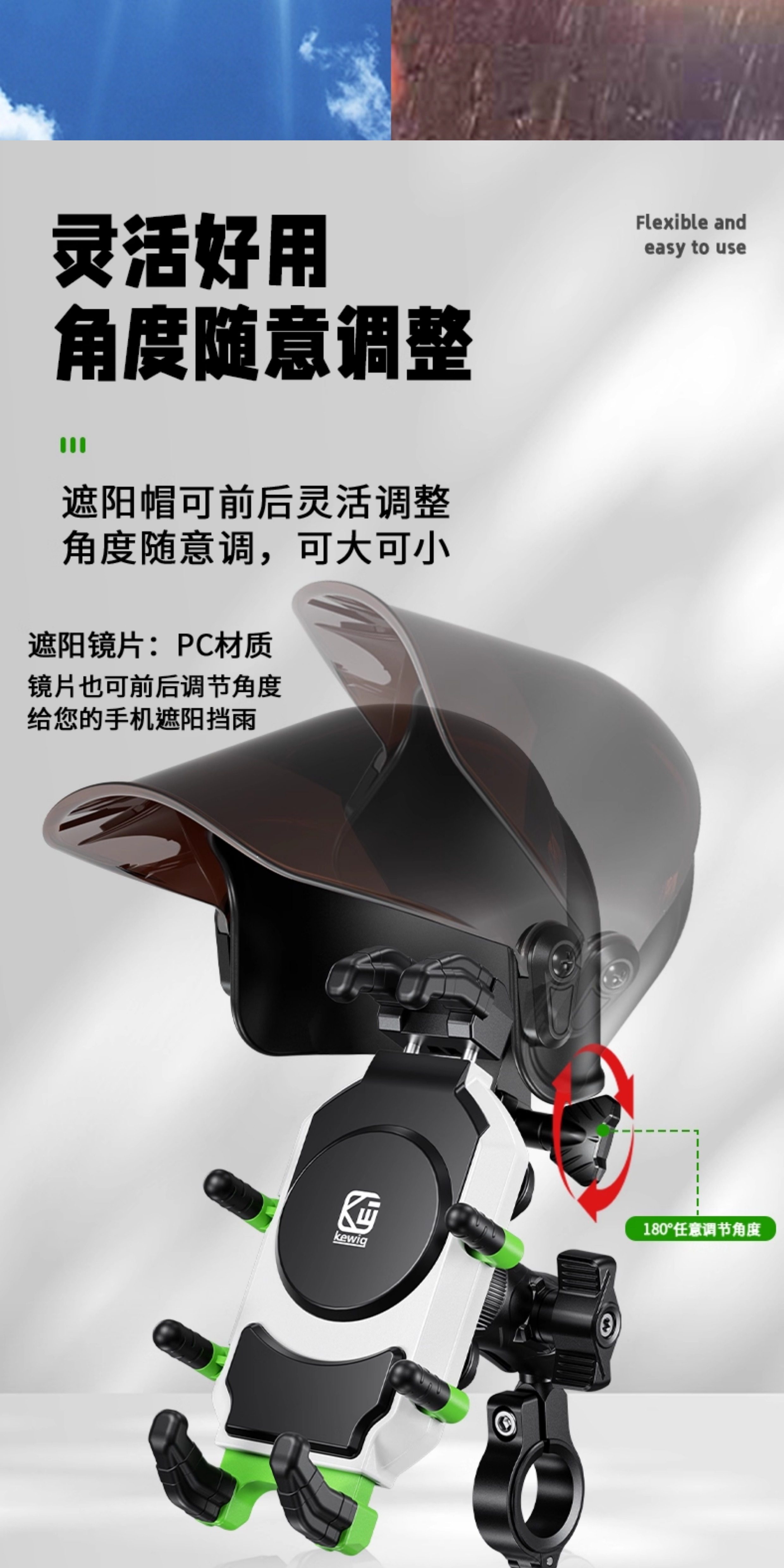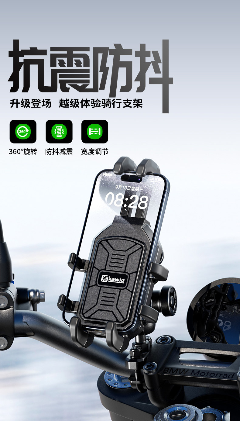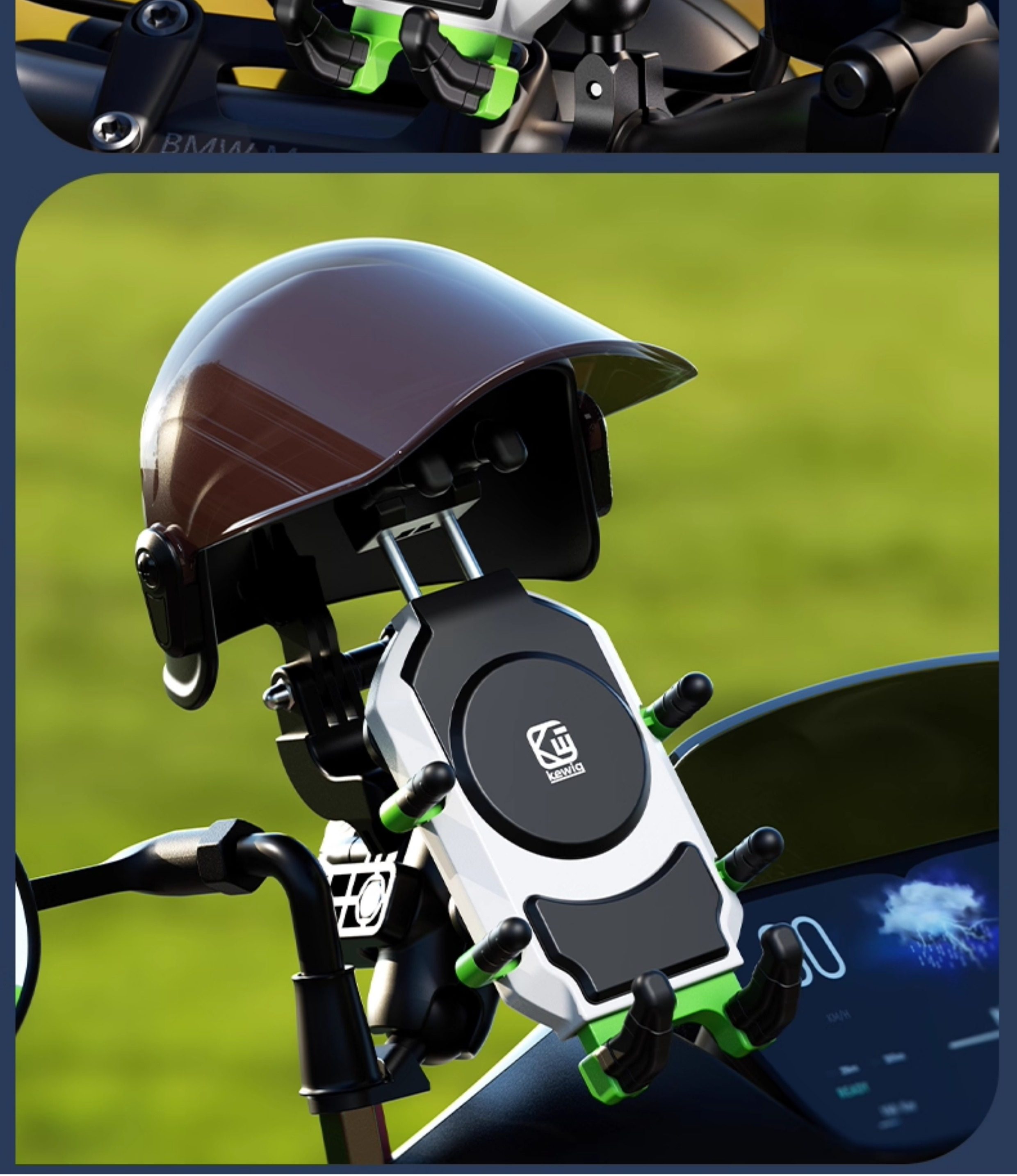Kewig Motorcycle Mobile Navigation Stand Shock Absorbing Takeaway Riding Electric Vehicle Stand Rain Sun Hat