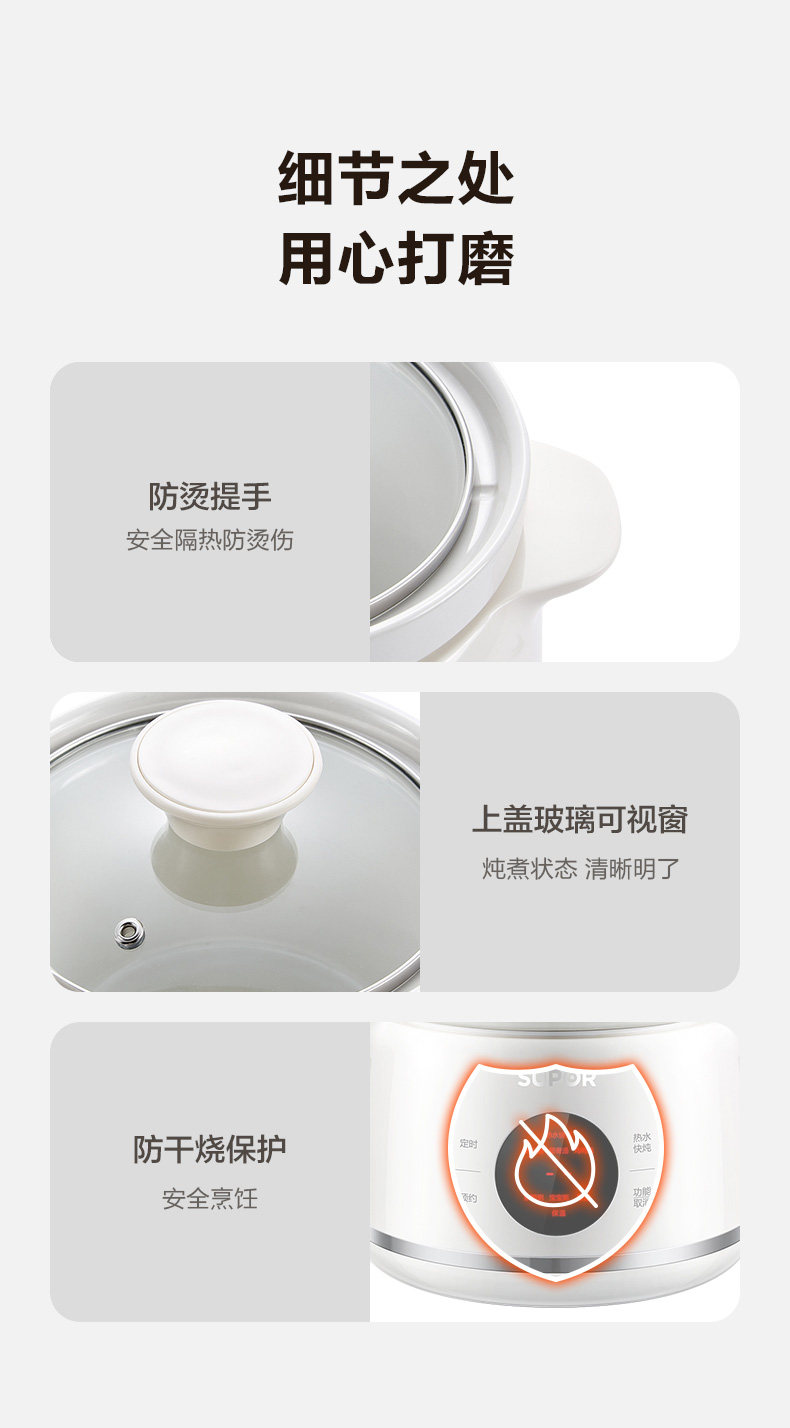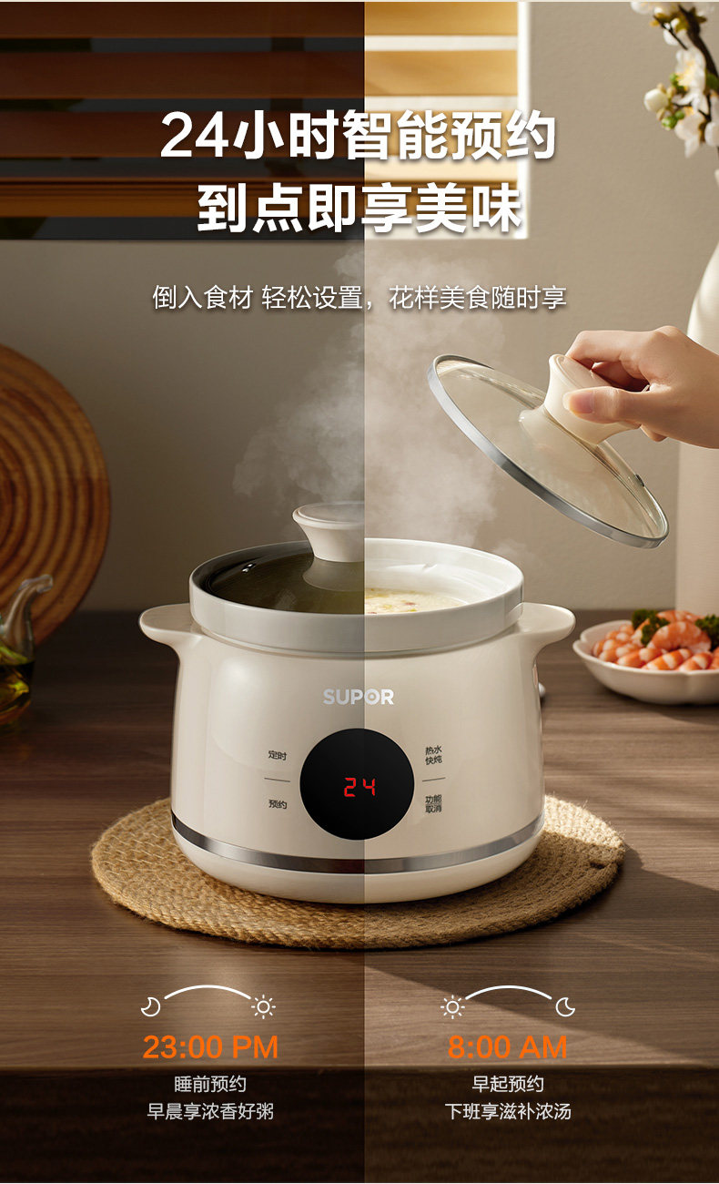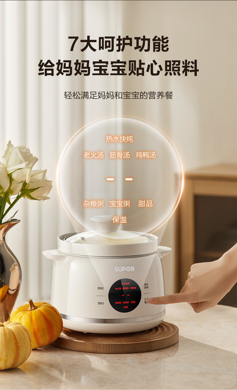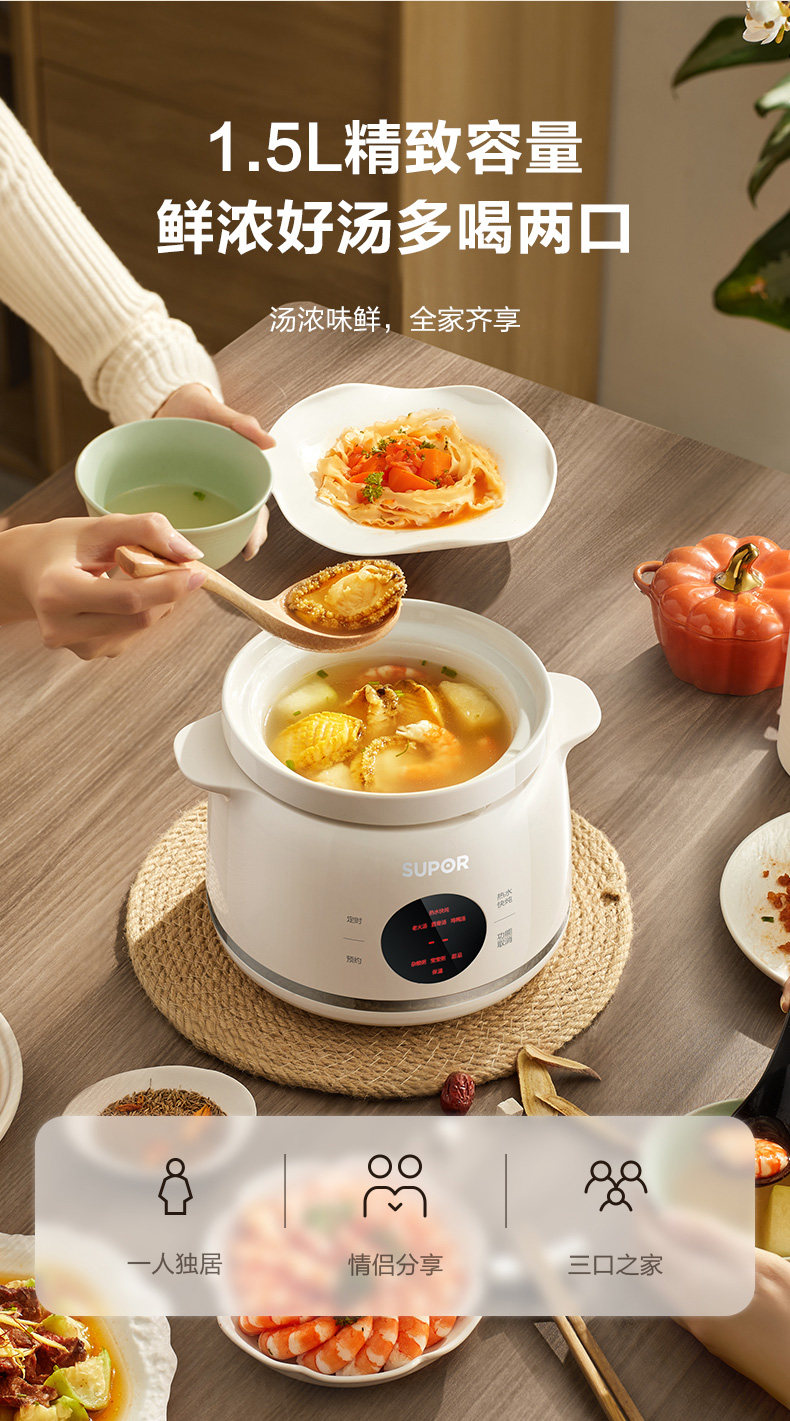 Supor Electric Stewing Pot for Home Use, Automatic Ceramic Soup and Stew Pot, Baby Food and Bird's Nest Cooking Machine