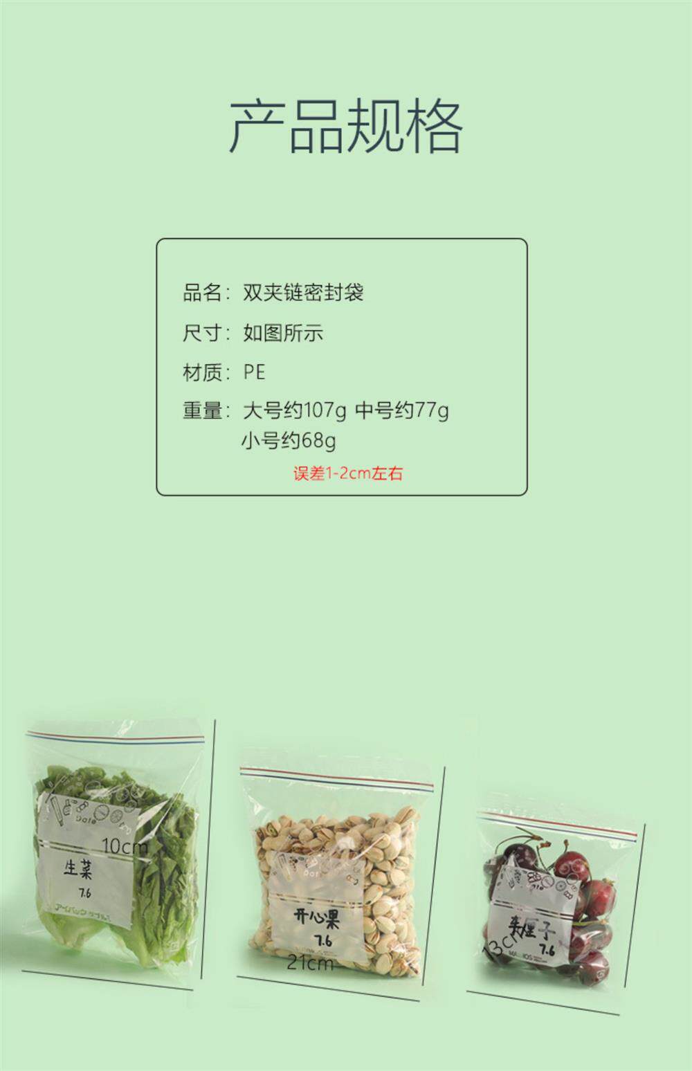 Food-Grade Household Double-Layer Fresh-Keeping Dense Bags, Special Thickened Refrigeration and Freezing Storage Bags for the Refrigerator