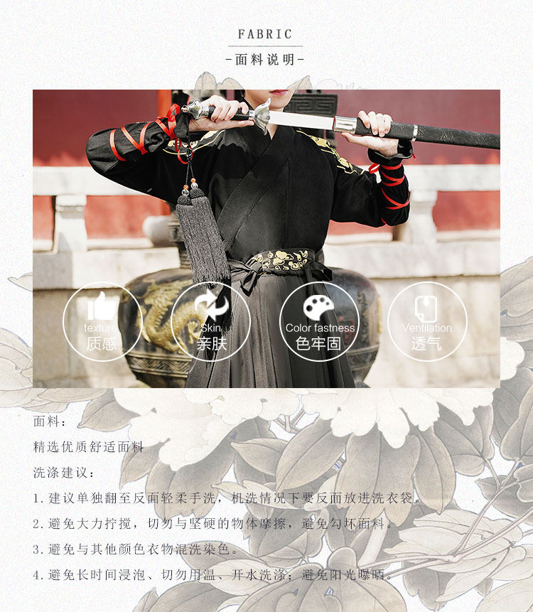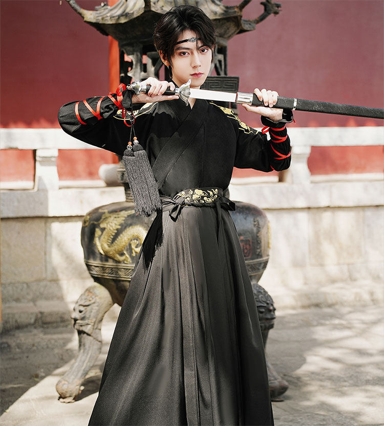 Item Number Summer Hanfu Men's Black Knight Embroidered Dragon