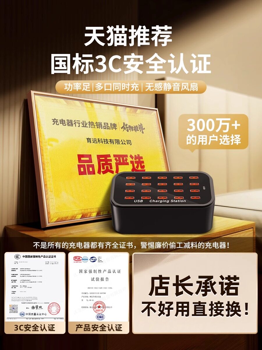 Sort by color Collect + add to purchase, enjoy three-year warranty and 30-day free trial,Large quantity and excellent price. For specific prices, please contact customer service for details. Invoicing is supported.,CEFC certified 10-port USB 50W high power plug-in type,CEFC certified 10-port Type-C 120W high power power strip model,CEFC certified 4-port Type-C+6-port USB 100W high-power power strip model,CEFC certified 12-port 60W high-power fast charging with heat dissipation,CEFC certified 12-port USB 60W high-power charger with cooling,CEFC certified, with fan, 10 ports, 100W high power fast charging, with heat dissipation,CEFC certified, with fan, 16 ports, 100W high power fast charging, with heat dissipation,CEFC certified, with fan, 20 ports, 100W high power fast charging, with heat dissipation,2024 new flagship version CCC certification with fan 12 ports 100W high power fast charging with heat dissipation,2024 new flagship version CCC certification with fan 20 ports 100W high power fast charging with heat dissipation,2024 new flagship version CCC certification with fan 20 ports 200W high power fast charging with heat dissipation,2024 new flagship version CCC certification with fan 30 ports 300W high power fast charging with heat dissipation,CEFC certified with fan and switch 30 ports 150W high power fast charging with heat dissipation,CEFC certified wireless charging + PD + QC3.0 + 4 USB sockets 240w high power fast charging,CEFC certified with fan and switch 50 ports 300W high power fast charging with heat dissipation,--------The following models are paired with data cable packages,CEFC certified 10-port Type-C 120W high power plug-in type + 5 Apple PD data cables,CEFC certified 12-port USB high-power charger + 10 Typec data cables,CEFC certified 12-port USB high-power charger + 10 Android data cables,CEFC certified 12-port USB high-power charger + 10 Apple data cables,CEFC certified, with fan, 12 ports, 60W high power fast charging, with heat dissipation + 10 typec data cables,CEFC certified, with fan, 12 ports, 60W high power fast charging, with heat dissipation + 10 Android data cables,CEFC certified, with fan, 12 ports, 60W high power fast charging, with heat dissipation + 10 Apple data cables,CEFC certified, with fan, 10 ports, 100W high power fast charging, with heat dissipation + 10 typec data cables,CEFC certified, with fan, 10 ports, 100W high power fast charging, with heat dissipation + 10 Android data cables,CEFC certified, with fan, 10 ports, 100W high power fast charging, with heat dissipation + 10 Apple data cables,CEFC certified, with fan, 16 ports, 100W high power fast charging, with heat dissipation + 10 typec data cables,CEFC certified, with fan, 16 ports, 100W high power fast charging, with heat dissipation + 10 Android data cables,CEFC certified, with fan, 16 ports, 100W high power fast charging, with heat dissipation + 10 Apple data cables,CEFC certified, with fan, 20 ports, 100W high power fast charging, with heat dissipation + 10 typec data cables,CEFC certified, with fan, 20 ports, 100W high power fast charging, with heat dissipation + 10 Android data cables,CEFC certified, with fan, 20 ports, 100W high power fast charging, with heat dissipation + 10 Apple data cables,CEFC certified with fan and switch 30 ports 150W high power fast charging with heat dissipation + 10 typec data lines,CEFC certified with fan and switch 30 ports 150W high power fast charging with heat dissipation + 10 Android data cables,CEFC certified with fan and switch 30 ports 150W high power fast charging with heat dissipation + 10 Apple data cables,CEFC certified with fan and switch 50 ports 300W high power fast charging with heat dissipation + 10 Type-C data cables,CEFC certified with fan and switch 50 ports 300W high power fast charging with heat dissipation + Android 10 data cable,CEFC certified with fan and switch 50 ports 300W high power fast charging with heat dissipation + Apple 10 data cable