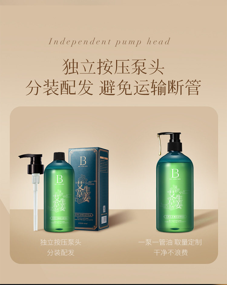 Bei Lingmei Mugwort and Ginger Skin Rejuvenation Massage Essential Oil Plant-Based Body Spa Massage Gua Sha for Unblocking Meridians and Activating Circulation Beauty Salon