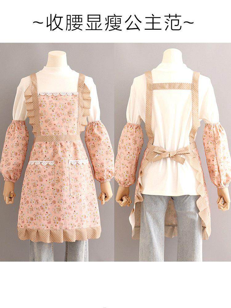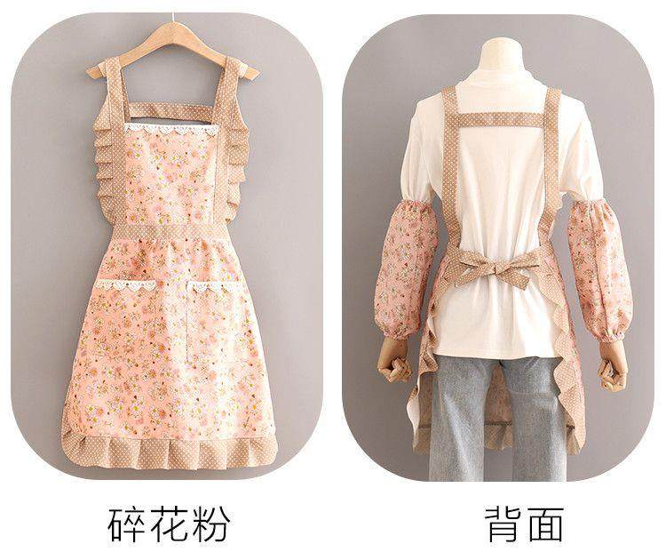 Apron with Sleeves Two-Piece Set Korean Style Lace Cooking Princess Style Breathable Fashionable Adult Work Clothes Summer 2023 New Style