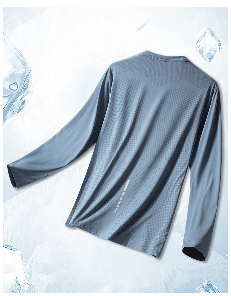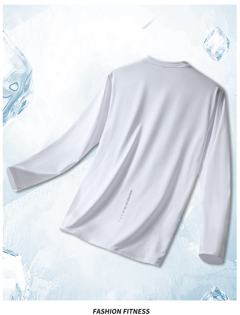 Ice Silk Long-Sleeved T-Shirt for Men, Sun Protection, Summer Thin, Loose, Quick-Drying, Breathable, Running Training, Fitness Clothing, Basketball Top