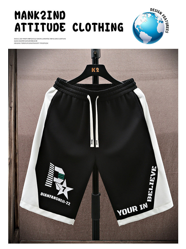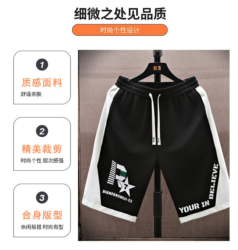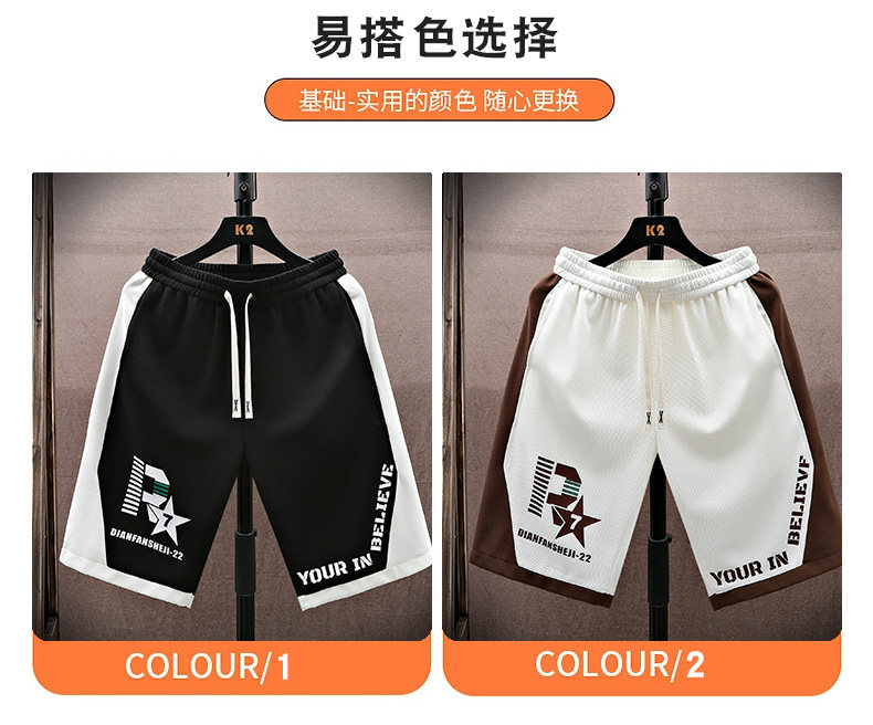 Trendy Patchwork Shorts for Men, Summer Ice Silk Quick-Dry Five-Point Casual Pants, Youth Trendy Straight-Leg Sports Pants
