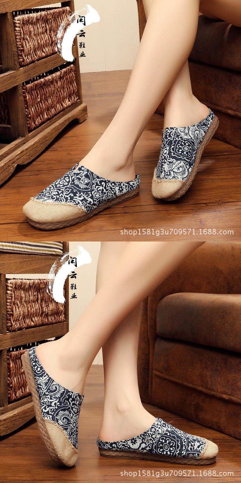 Yunnan Handmade Cotton and Linen Slippers for Women, Canvas Slippers for Couples, Japanese-Style Closed-Toe Soft-Soled Home Shoes, Linen Straw Shoes