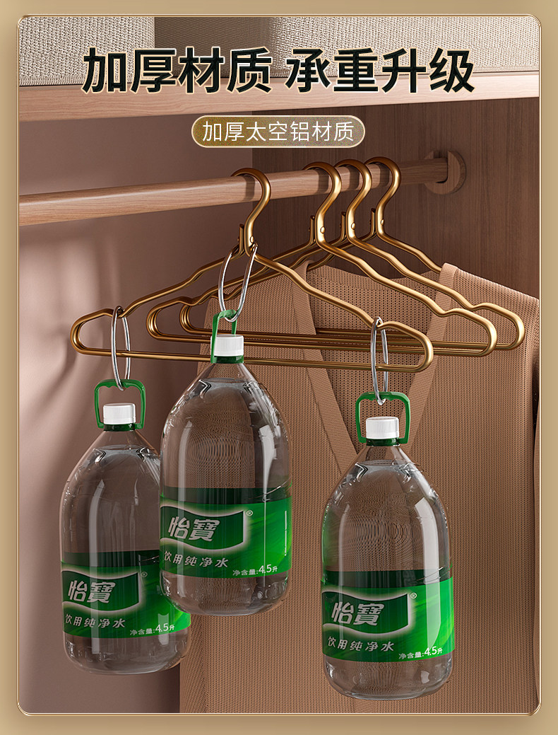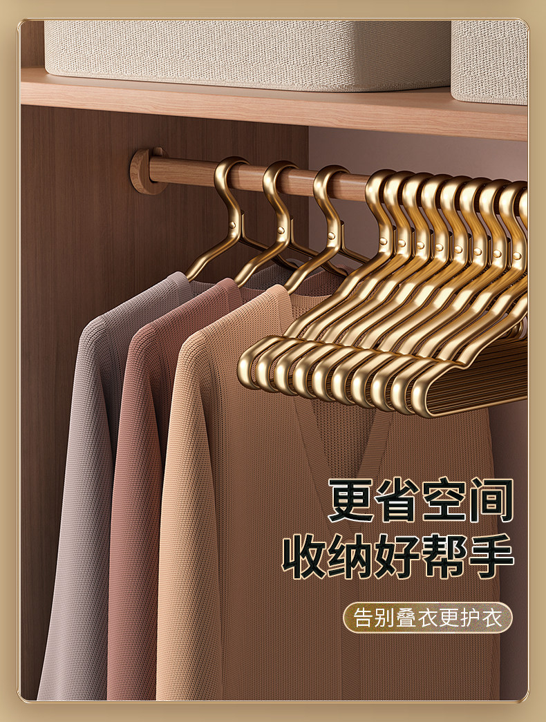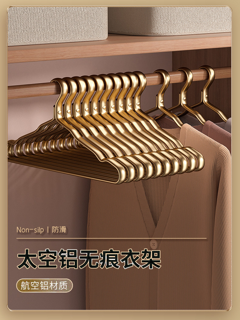 100 pieces space aluminum alloy clothes hanger for home hanging clothes, no trace, anti-shoulder angle, high-end light luxury clothes drying rack, golden clothes support