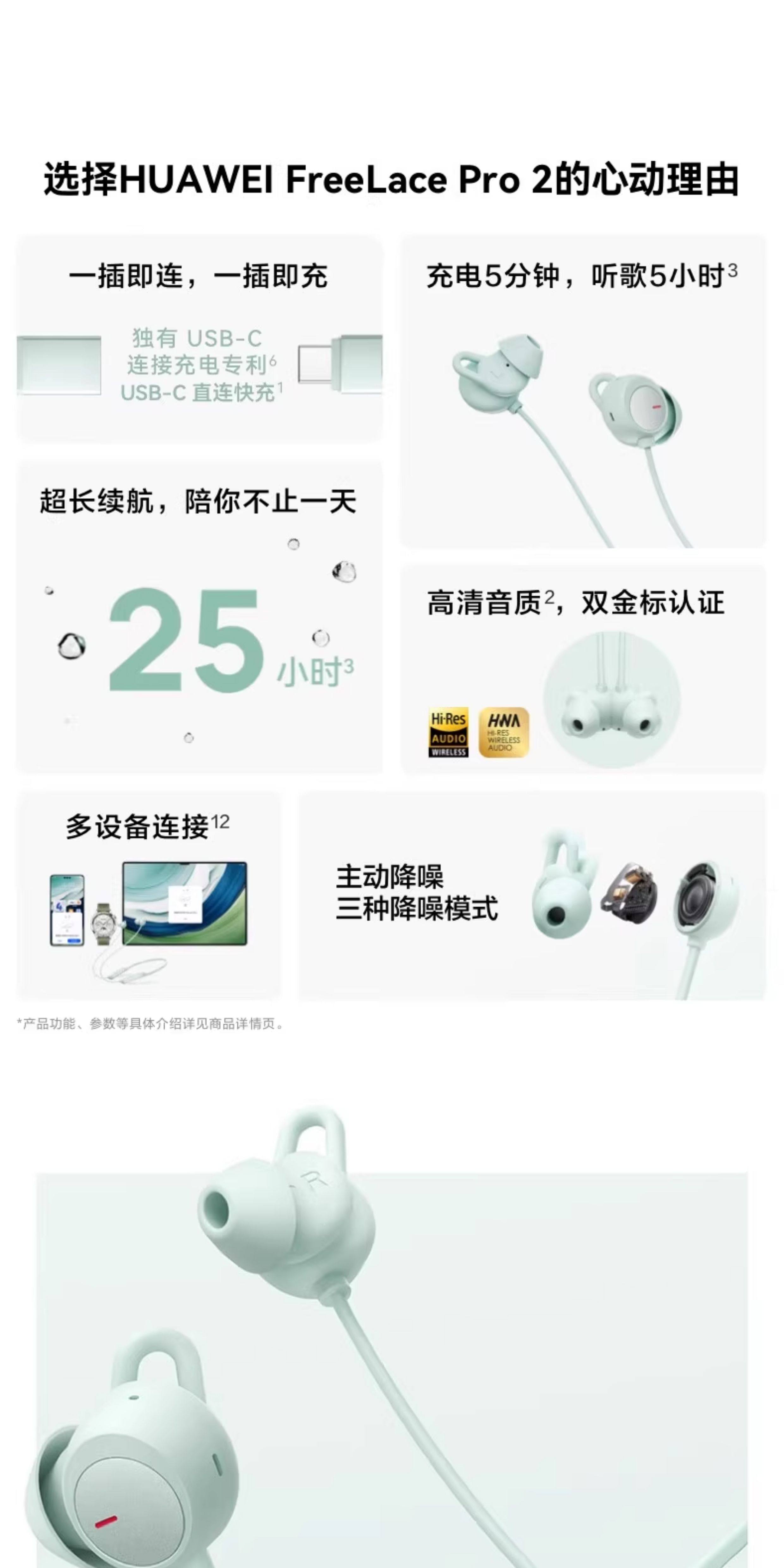 Huawei FreeLace Pro 2 Wireless Bluetooth Headset Noise Reduction Sports Neck Hanging Style 2024 Official Authentic Product