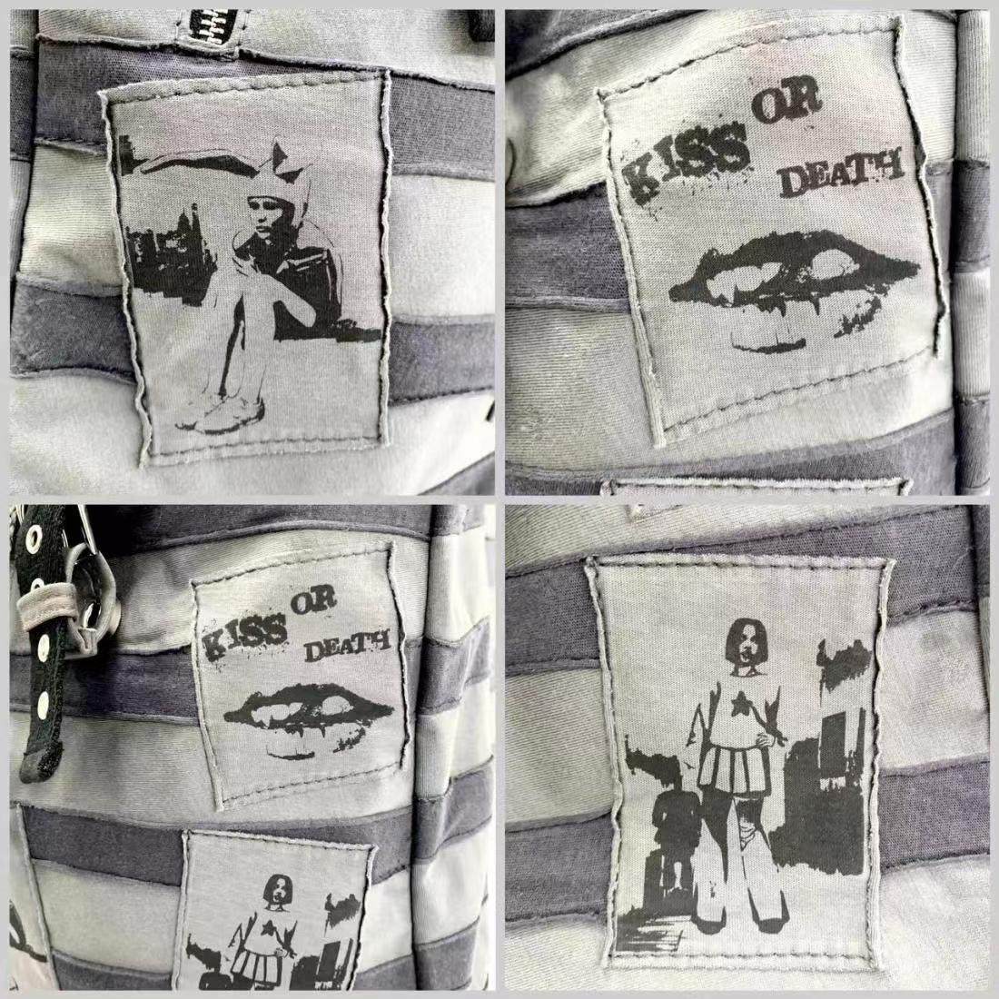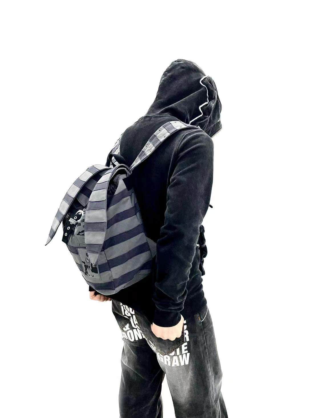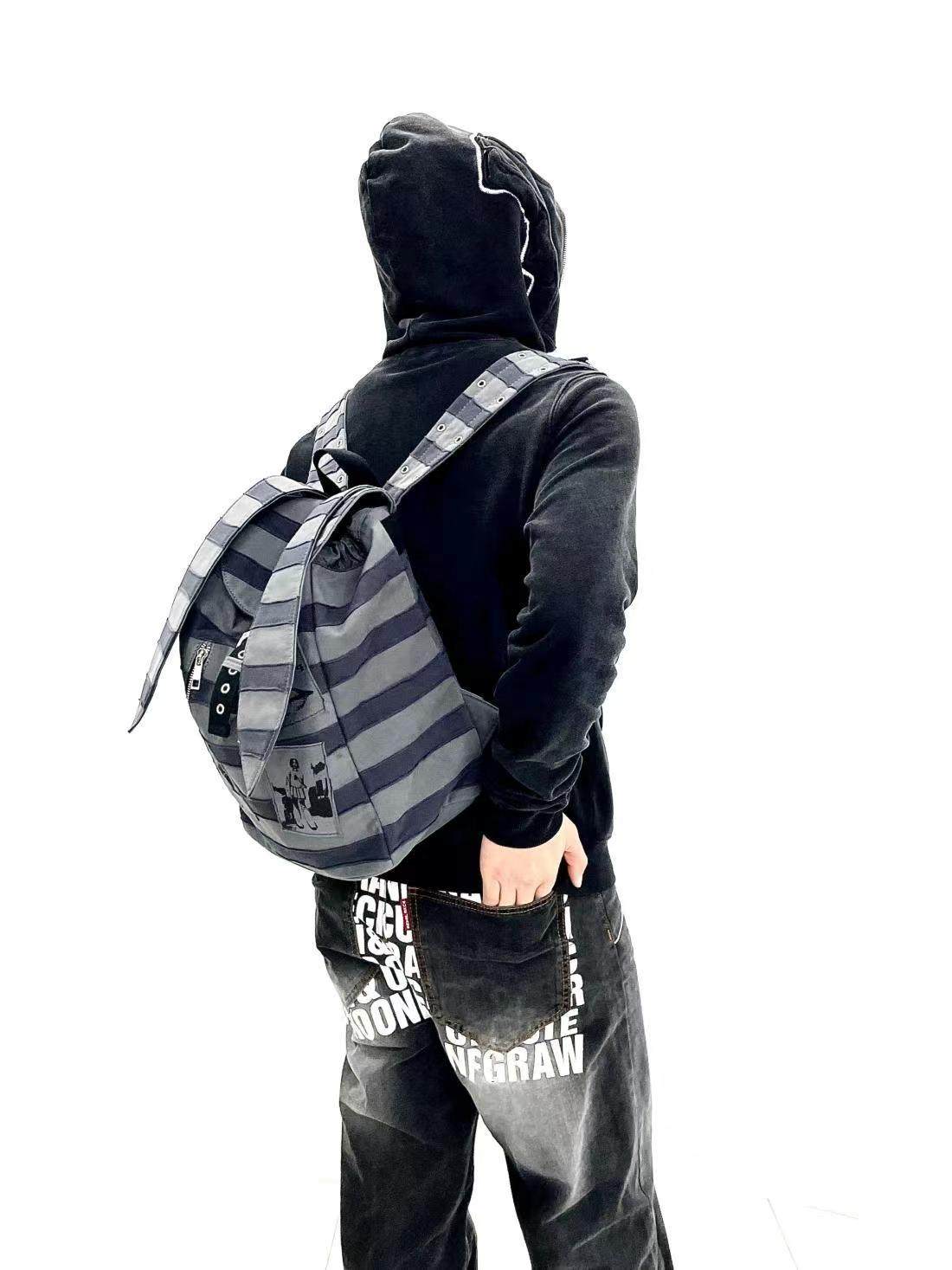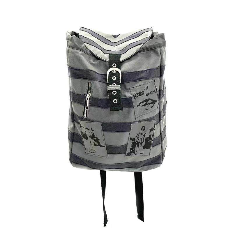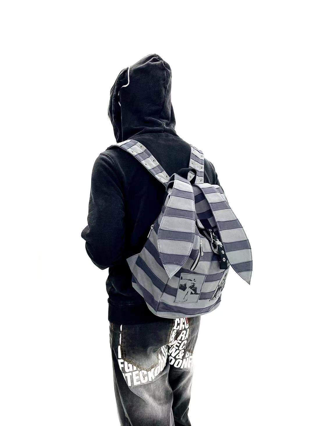 Sauce Original New Product Striped Patchwork Bunny Ears Backpack Punk Rock Subculture Patch Print Backpack