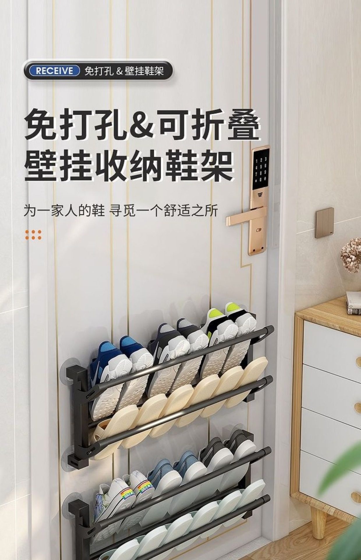 Over-The-Door Shoe Rack for Home Use, Wall-Mounted Entryway Shoe Cabinet, Simple Foldable Slipper Storage Organizer, Over-The-Door Shoe Hanger
