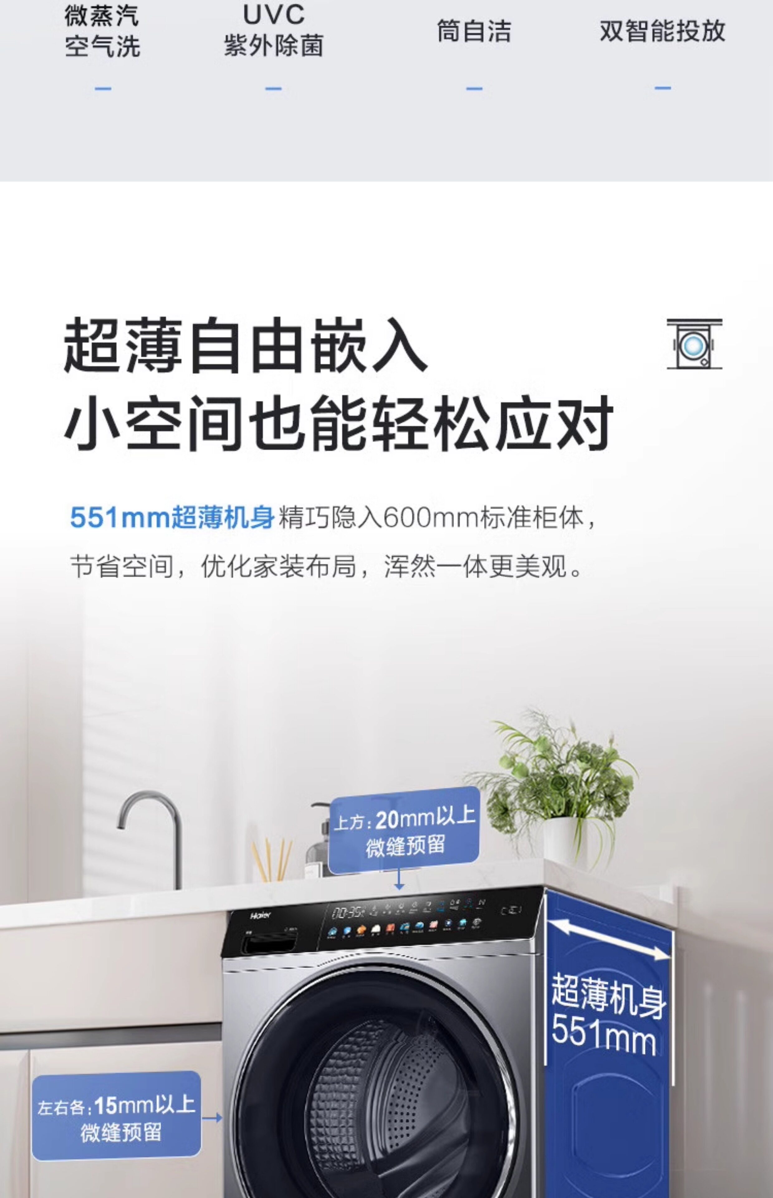 Haier XQG100-HBD14166PROL 10kg drum washing and drying integrated essence washing 2.0 ultra-thin washing machine
