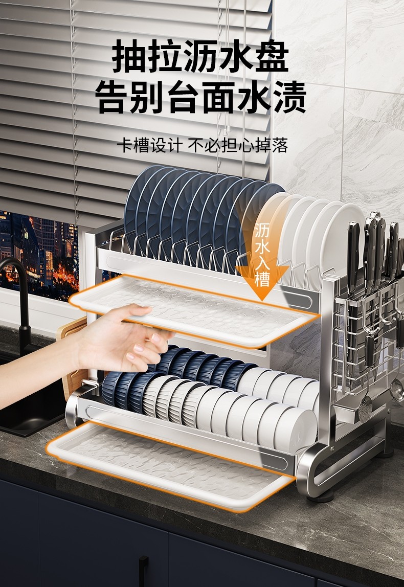 Color Classification [304 Stainless Steel] 43cm Double Layer Comes with 4 Hooks + Water Tray,[304 Stainless Steel] 43cm Double-Layered Cutting Board Rack + 4 Hooks + Water Tray,【304 Stainless Steel】43Cm Double-Layer Dish Rack with Knife and Utensil Holder + 4 Hooks + Drip Tray,[304 Stainless Steel] 43cm Double Layer Comes with a Complete Set + 4 Hooks + Water Tray,[304 Stainless Steel] 56cm Double Layer Comes with 4 Hooks + Water Tray,[304 Stainless Steel] 56cm Double-Layered Cutting Board Rack + 4 Hooks + Water Tray,[304 Stainless Steel] 56cm Double-Layer Knife and Chopstick Holder + 4 Hooks + Water Tray,[304 Stainless Steel] 56cm Double Layer Comes with a Complete Set + 4 Hooks + Water Tray,[304 Stainless Steel] 43cm Three-Layer Comes with 4 Hooks + Water Tray,[304 Stainless Steel] 43cm Three-Layer Cutting Board Rack + 4 Hooks + Water Tray,[304 Stainless Steel] 43cm Three-Layer Knife and Chopstick Holder + 4 Hooks + Water Tray,[304 Stainless Steel] 43cm Three-Layer Comes with a Complete Set + 4 Hooks + Water Tray,[304 Stainless Steel] 56cm Three-Layer Comes with 4 Hooks + Water Tray,[304 Stainless Steel] 56cm Three-Layer Cutting Board Rack + 4 Hooks + Water Tray,[304 Stainless Steel] 56cm Three-Tier Dish Rack with Knife and Chopstick Holder + 4 Hooks + Drip Tray,[304 Stainless Steel] 56cm Three-Layer Comes with a Full Set + 4 Hooks + Water Tray,【201 Stainless Steel · Gunmetal Gray】43Cm Double-Tier with 4 Hooks + Drip Tray,[201 Stainless Steel·Gun Ash] 43cm Double Layer Free Storage Set + 4 Hooks,[201 Stainless Steel·Gun Ash] 56cm Double Layer Comes with a Full Set + 4 Hooks,A [201 Stainless Steel·Gun Gray] 56cm Double Layer Free Storage Set+,【201 Stainless Steel · Gunmetal Gray】43Cm Three-Tier with 4 Hooks + Drip Tray,[201 Stainless Steel·Gun Ash] 43cm Three-Layer Free Storage Set + 4 Hooks,【201 Stainless Steel - Gunmetal Gray】56Cm Three-Tier with 4 Hooks + Drip Tray,[201 Stainless Steel·Gun Ash] 56cm Three-Layer Storage Set + 4 Hooks,3,2,1