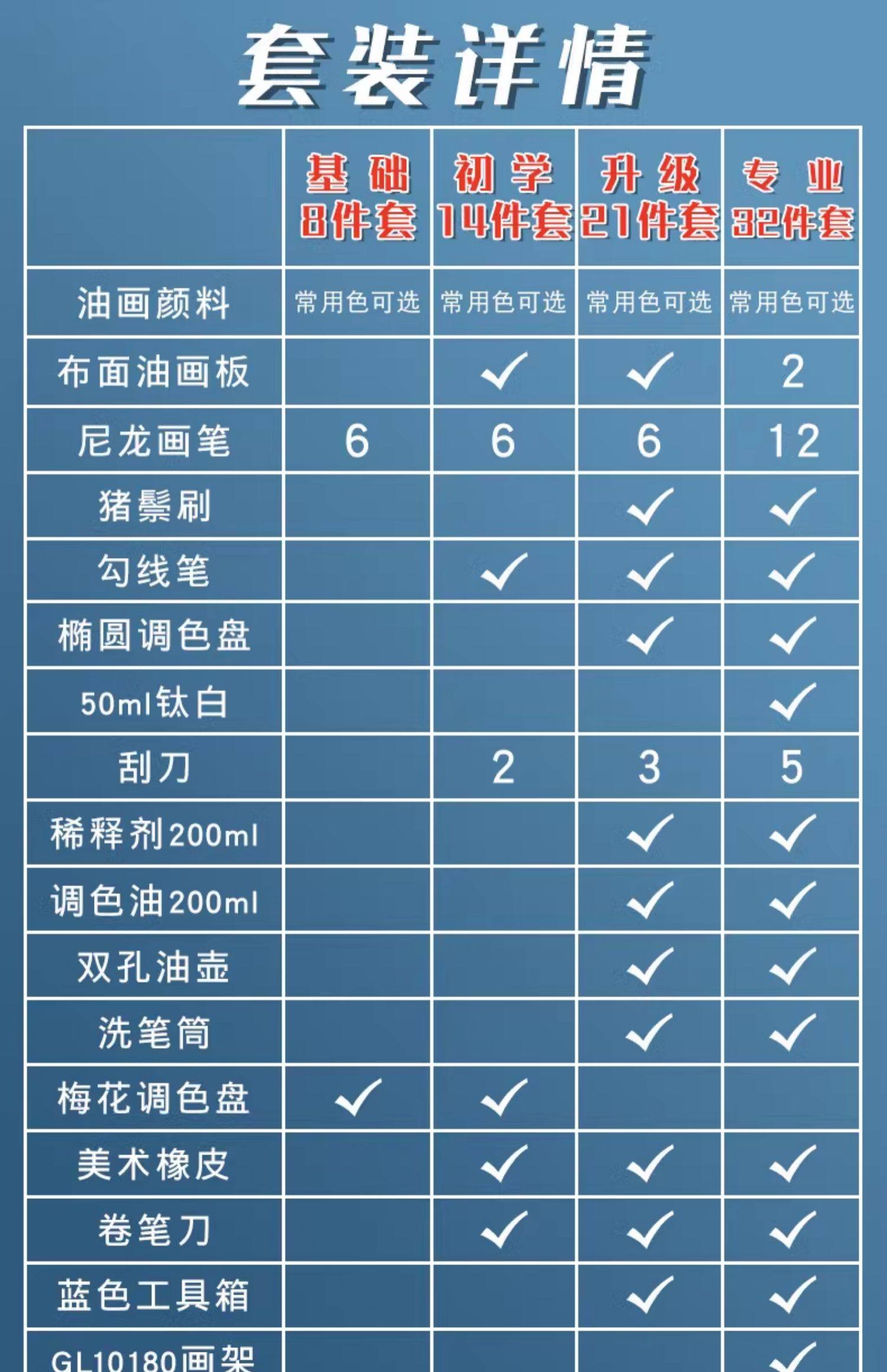 Color Classification Basic 8-Piece Set [Paint + Brush],14-Piece Set for Beginners [Paint + Drawing Board + Brush],Upgraded 21-Piece Set [Paint + Tool Box + Dilution Seasoning],Professional 32-Piece Set [Paint + Easel Equipment]