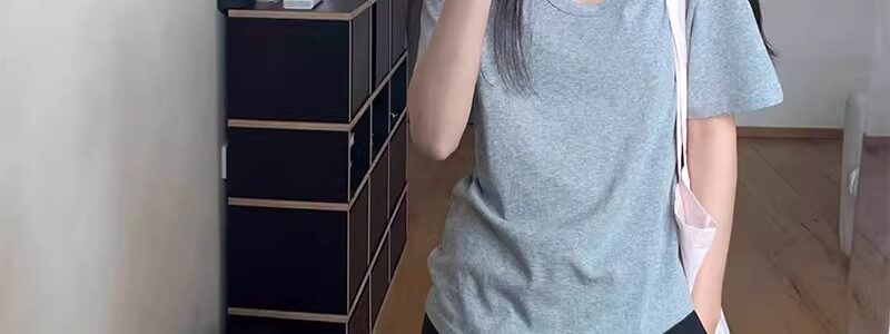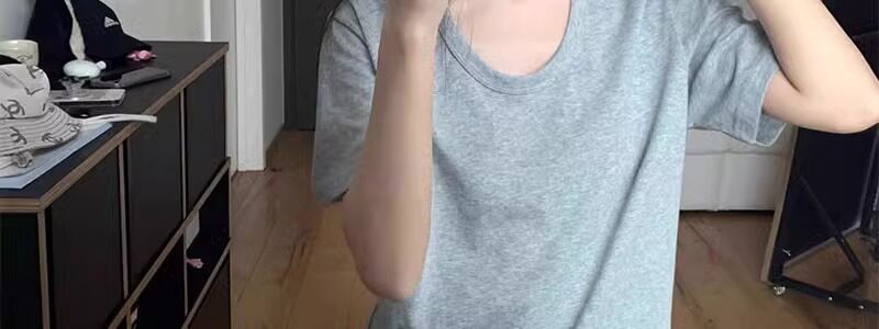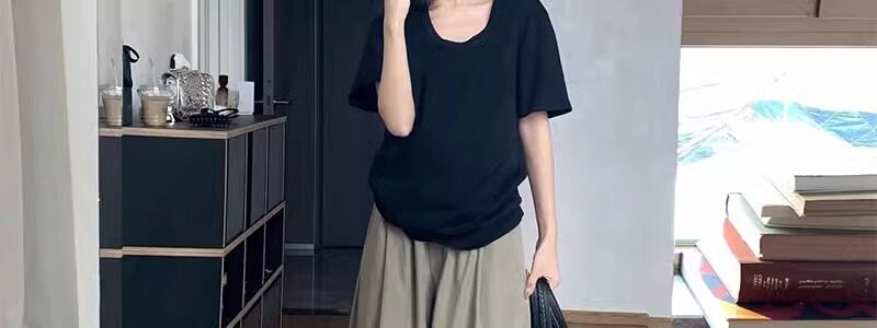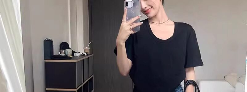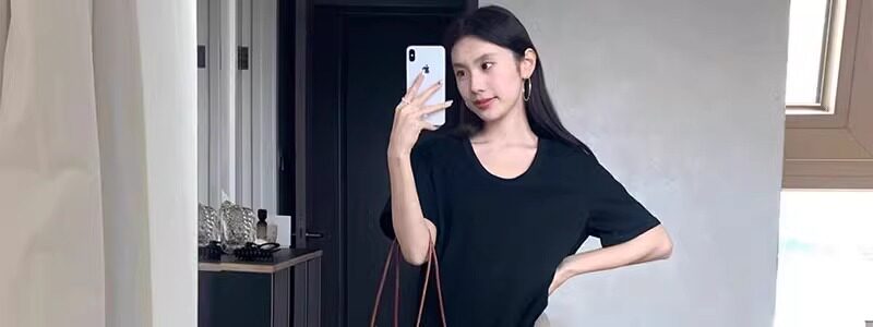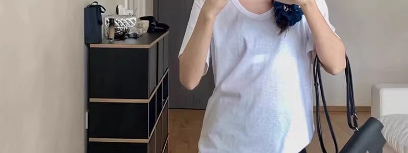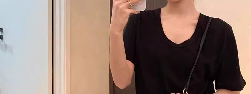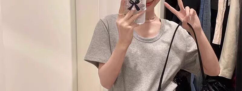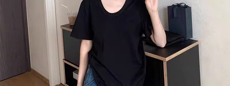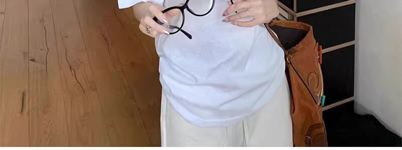 Korean Style White U-Neck Regular Shoulder Short-Sleeve T-Shirt for Women, Summer Basic Style, Pure Cotton, Large Neckline, Loose-Fitting Base Shirt Top