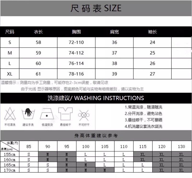China (cm) 160-165/84-86 165-170 / 88-90 167-172 / 92-96 168-173 / 98-102 170-176 / 106-110
