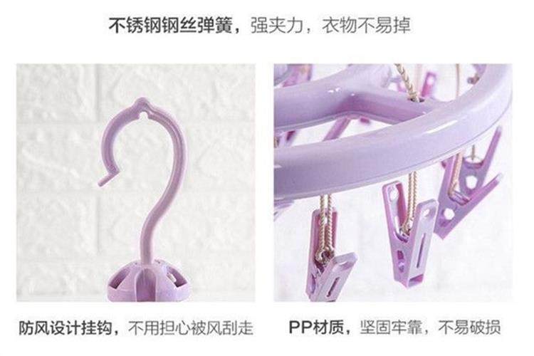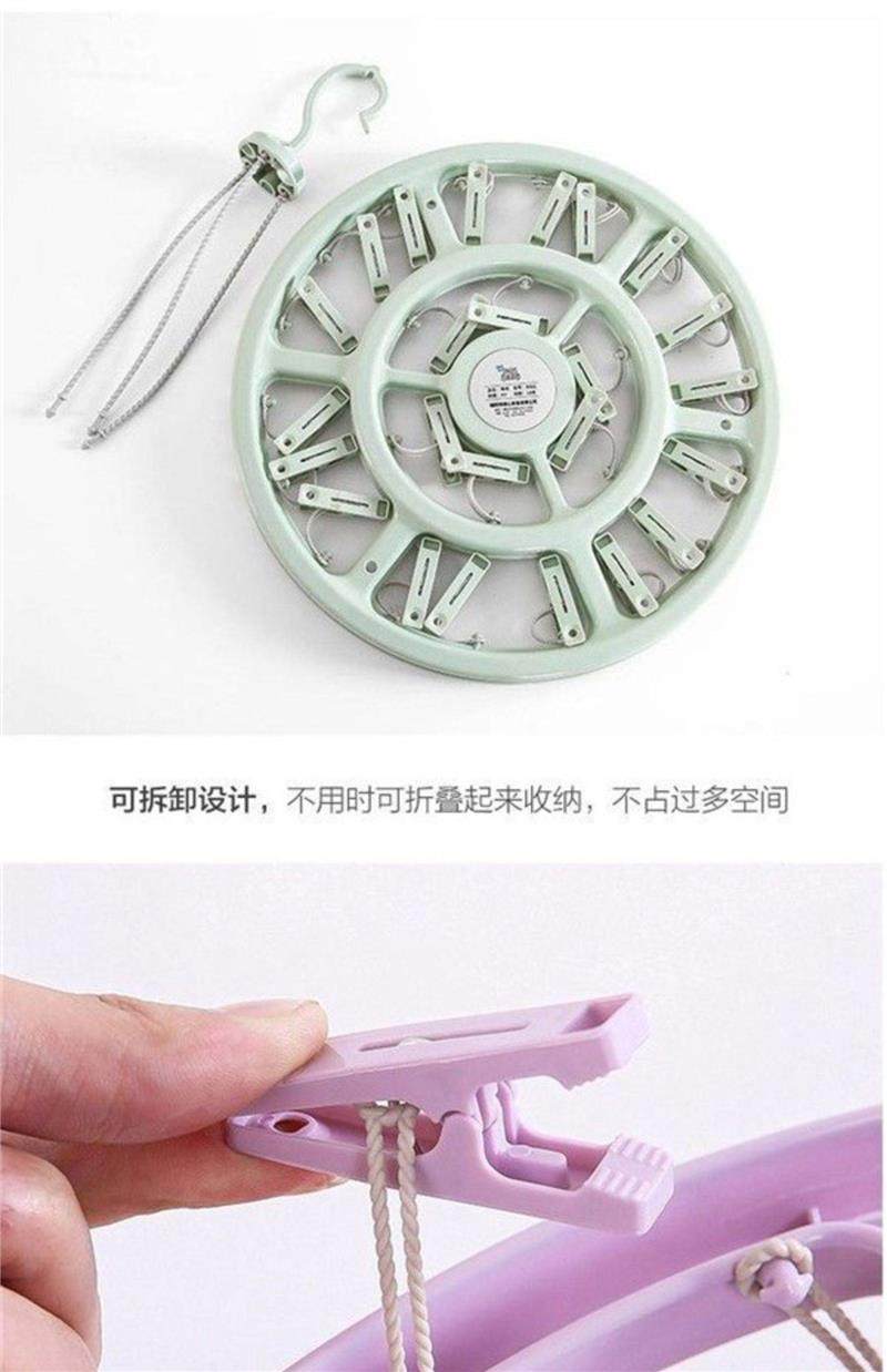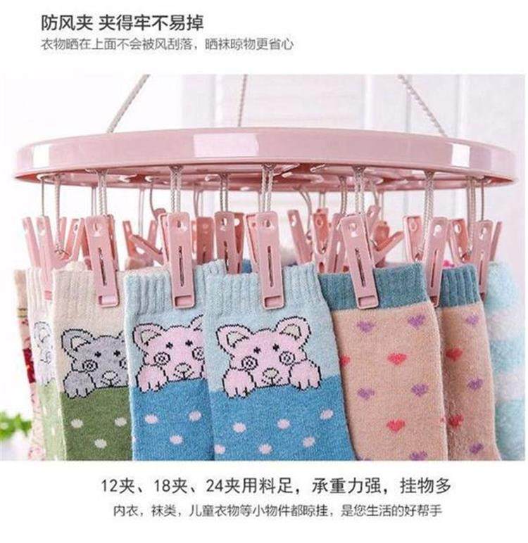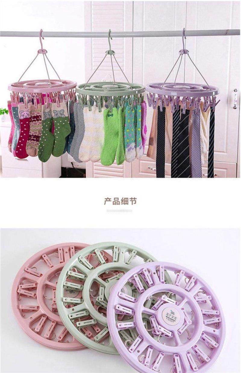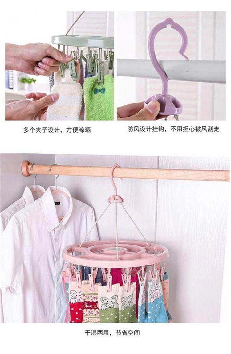 Adult Windproof Clothes Drying Rack with 32 Plastic Clips, Children's Sock Rack, Baby Household Multifunctional Drying Rack