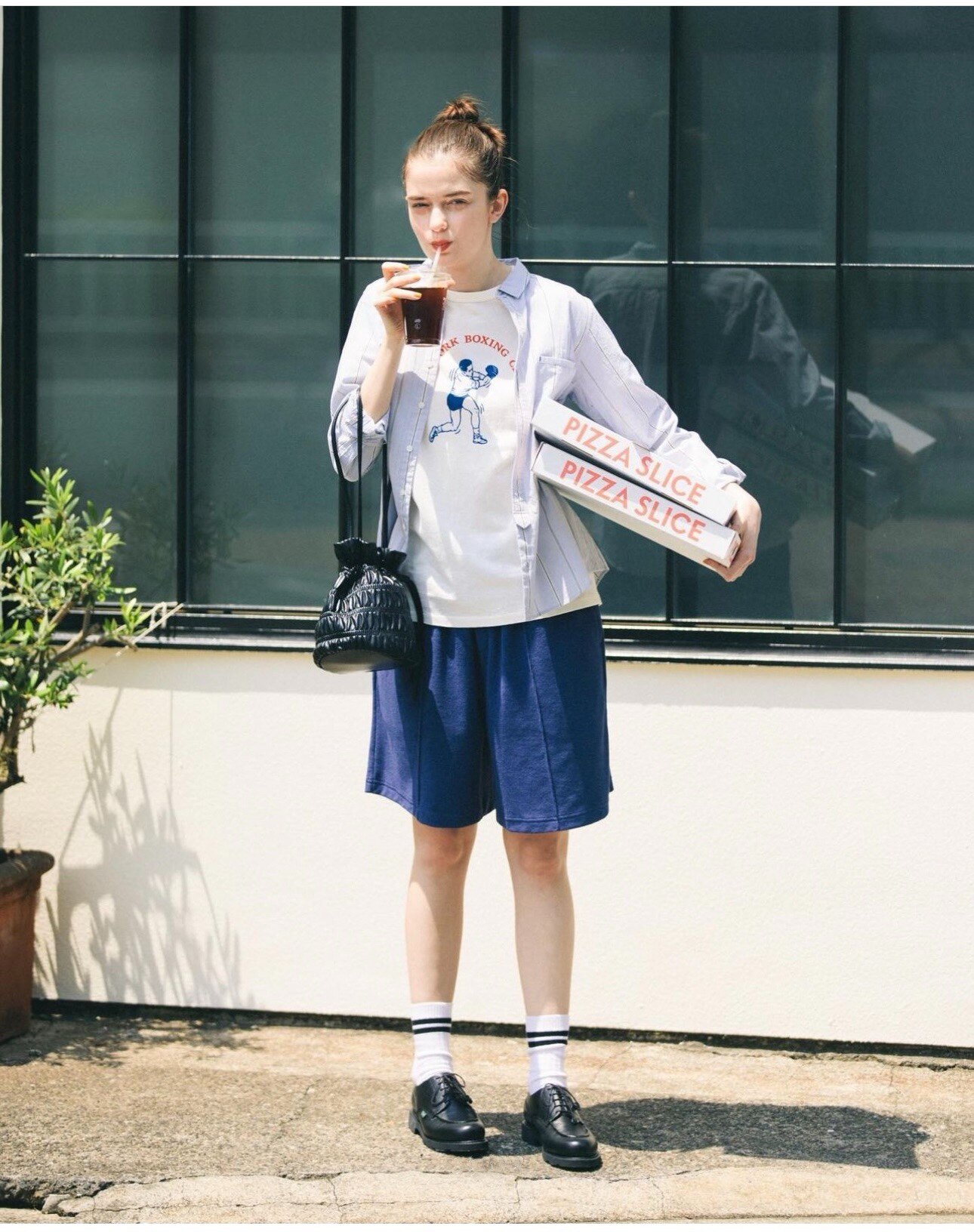 Japanese Trendy Brand Spring/Summer New Product Simple Round Neck Letter Cartoon Print Seamless Women's T-Shirt Short Sleeve Pure Cotton