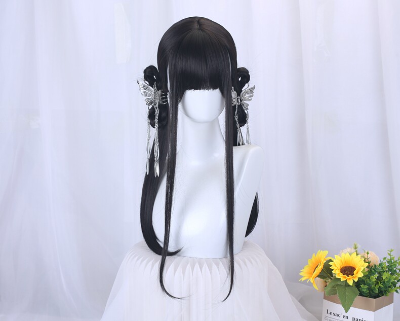 New Chinese-Style National Style Wig Braids, Retro Cheongsam, Hanfu Updo Hair Accessories, Chinese Style Daily Ancient Style Full Headpiece