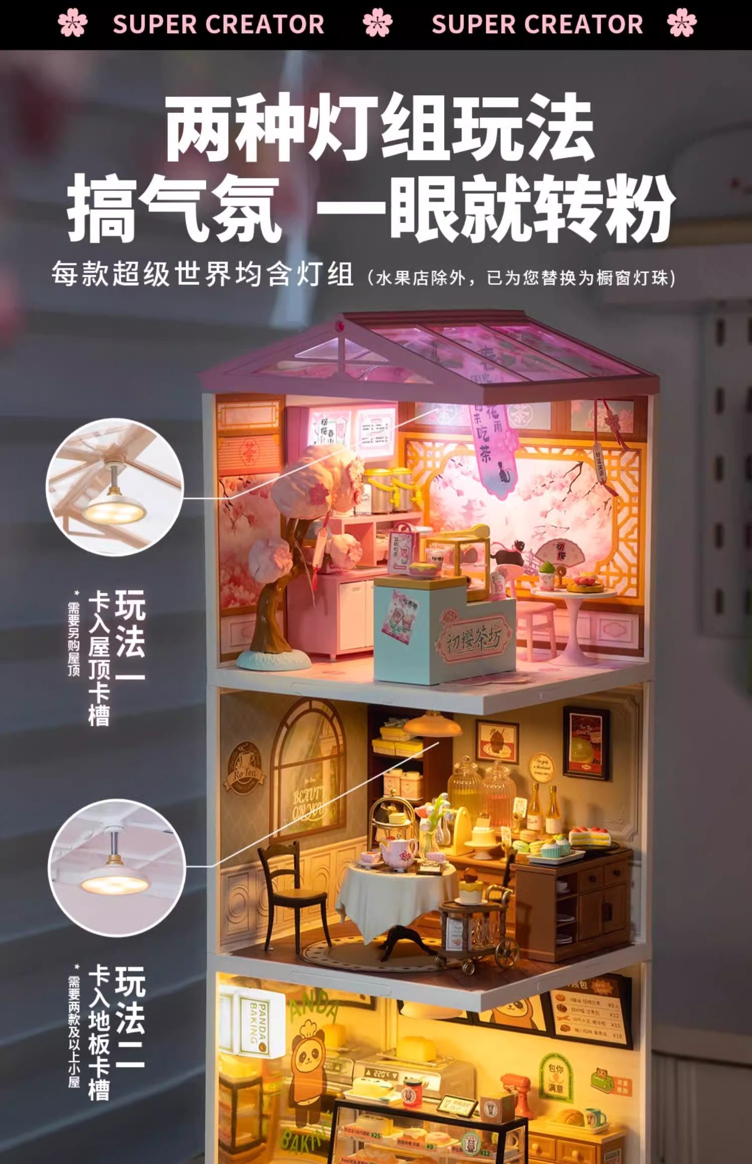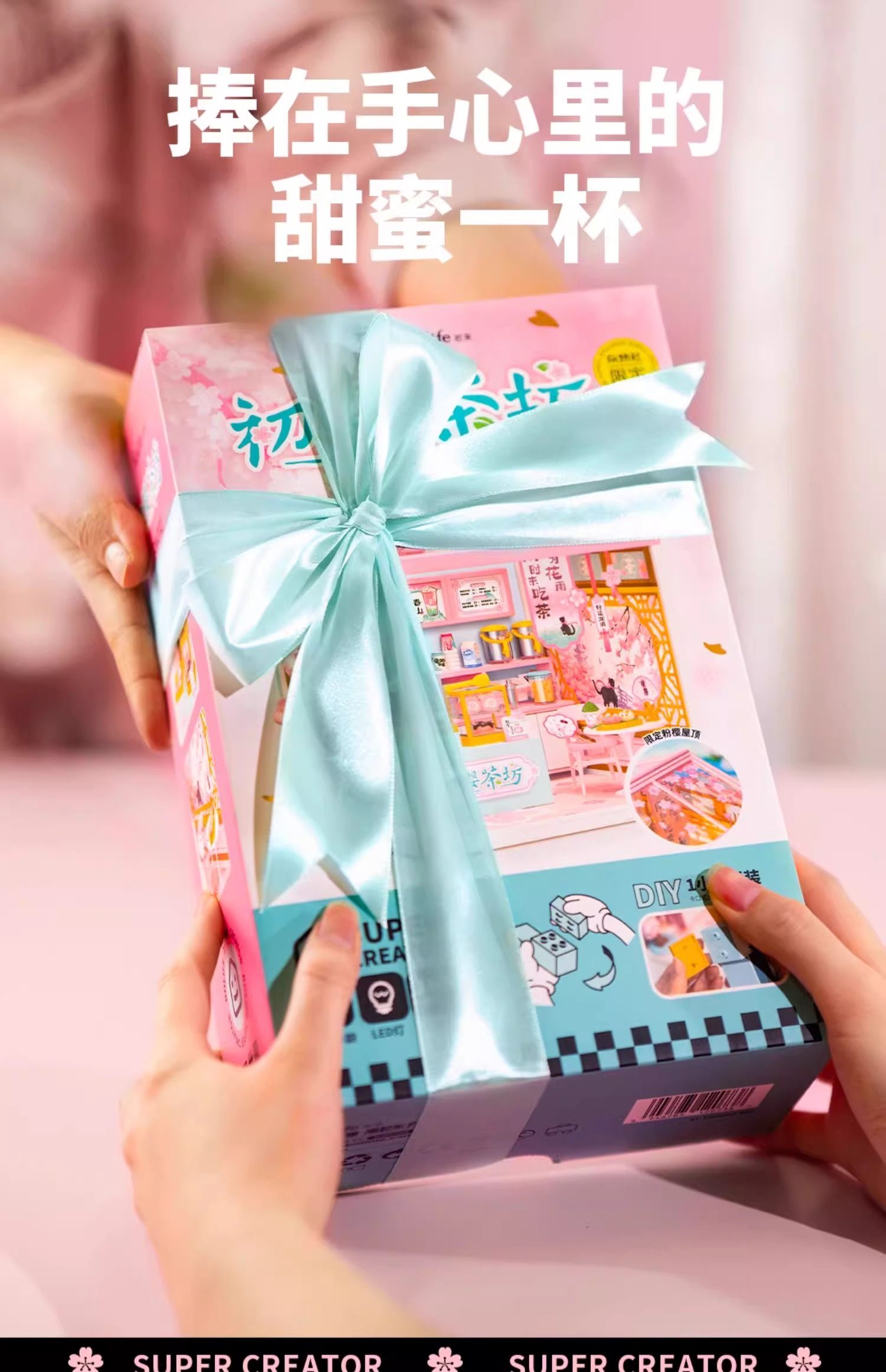 Ruo State Ruolai Super World Chuying Tea House Handmade DIY Hut Flower Room Miniature Scene Model House Toy Girl