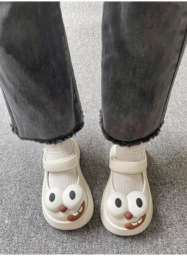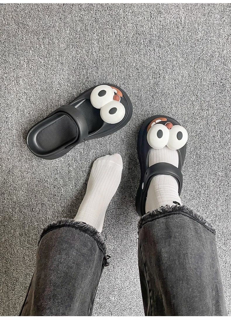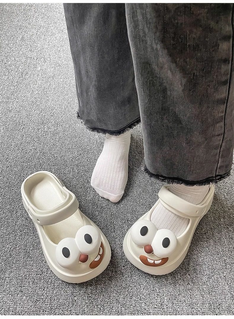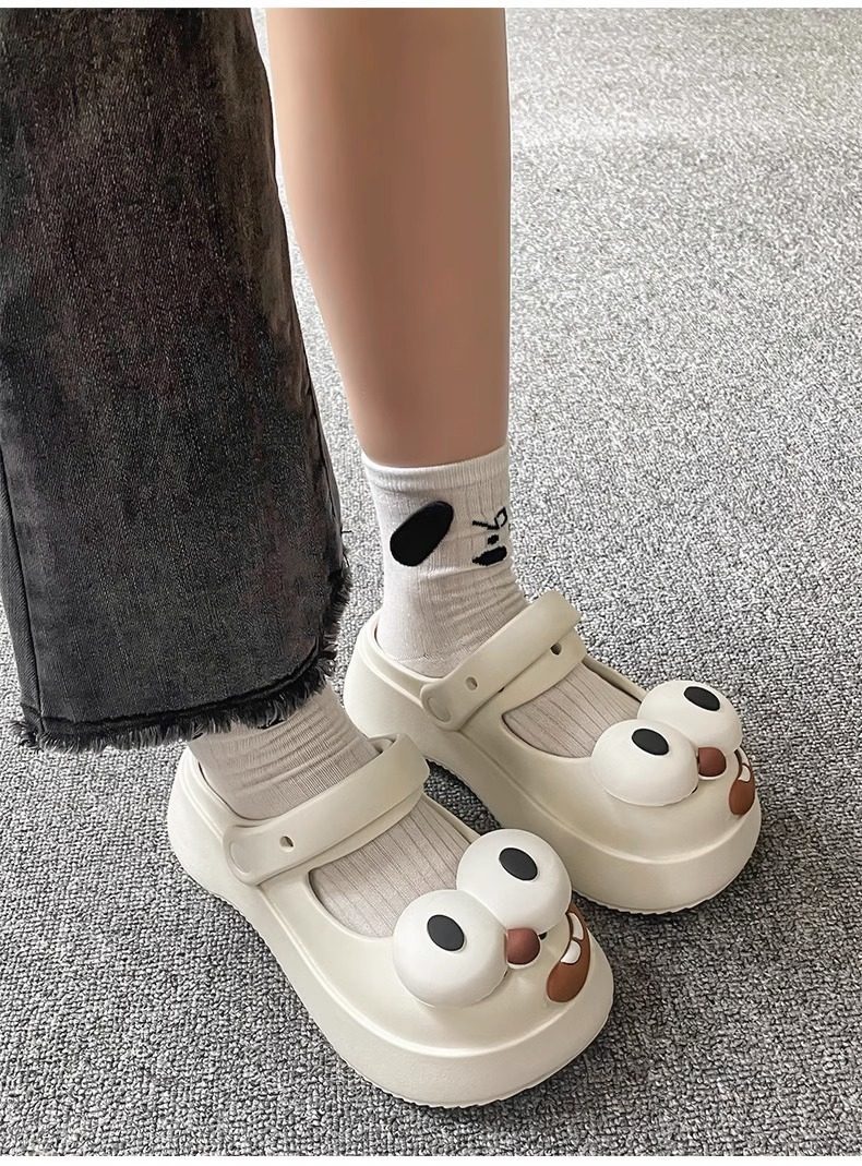 Thick-Soled Big-Eyed Dog Clogs for Women, Outdoor Slippers, Indoor Home Non-Slip Cartoon Closed-Toe Sandals for Summer