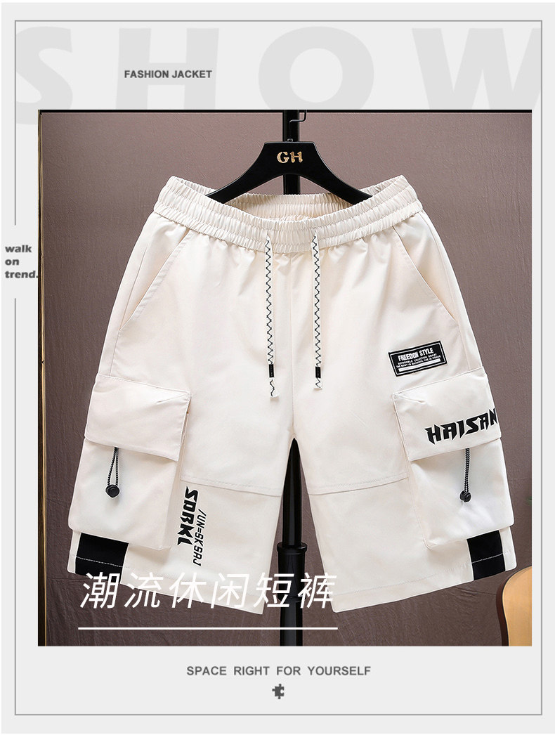 2025 New Style Work Shorts for Men, Summer Trendy Brand, Casual Sports Five-Point Pants for Teenagers, Middle and High School Students