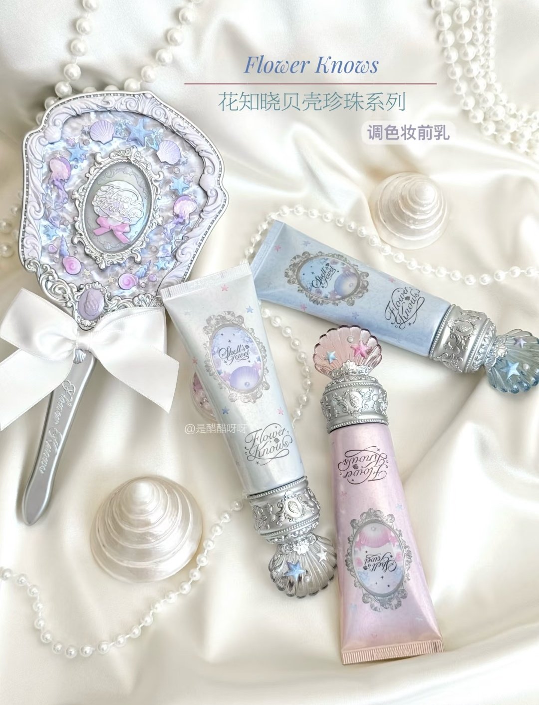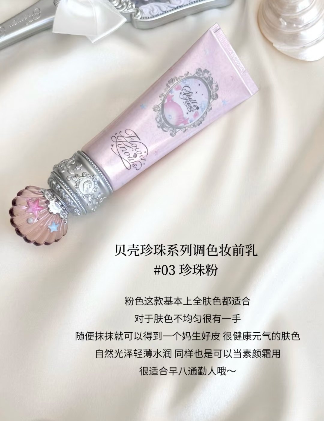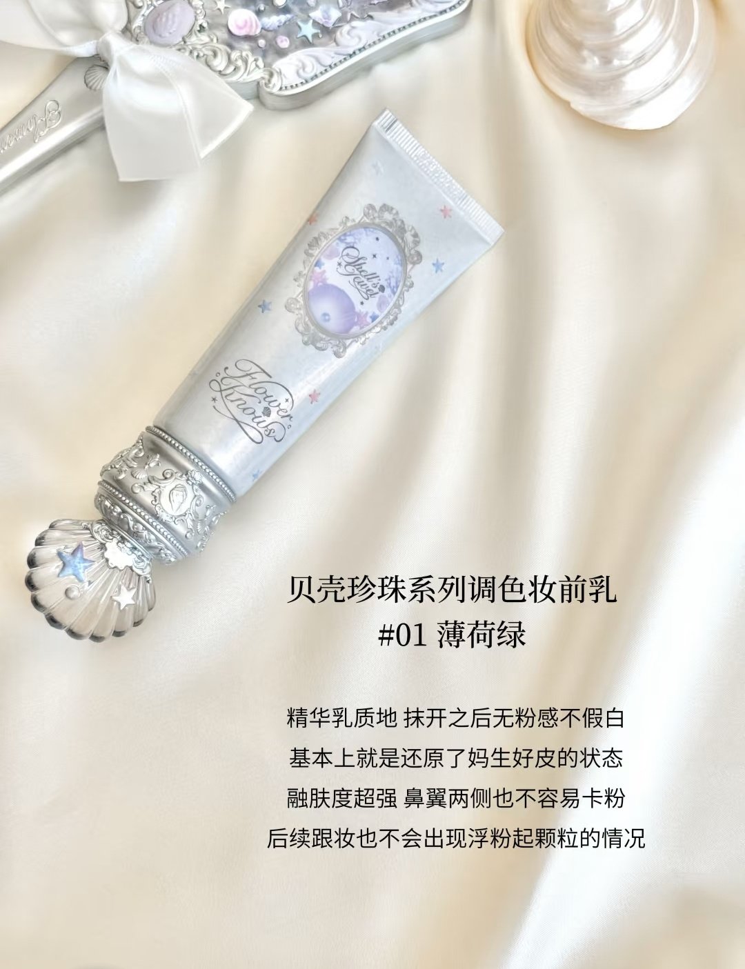 Flower Knows Shell Pearl Color-Adjusting Primer Moisturizing and Hydrating Non-Caking Pore Concealing Isolation Cream Brightening and Long-Lasting Makeup