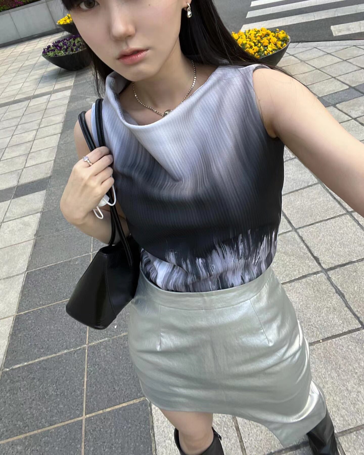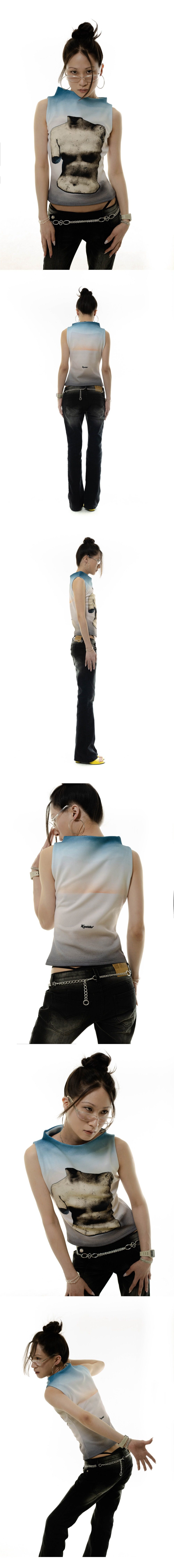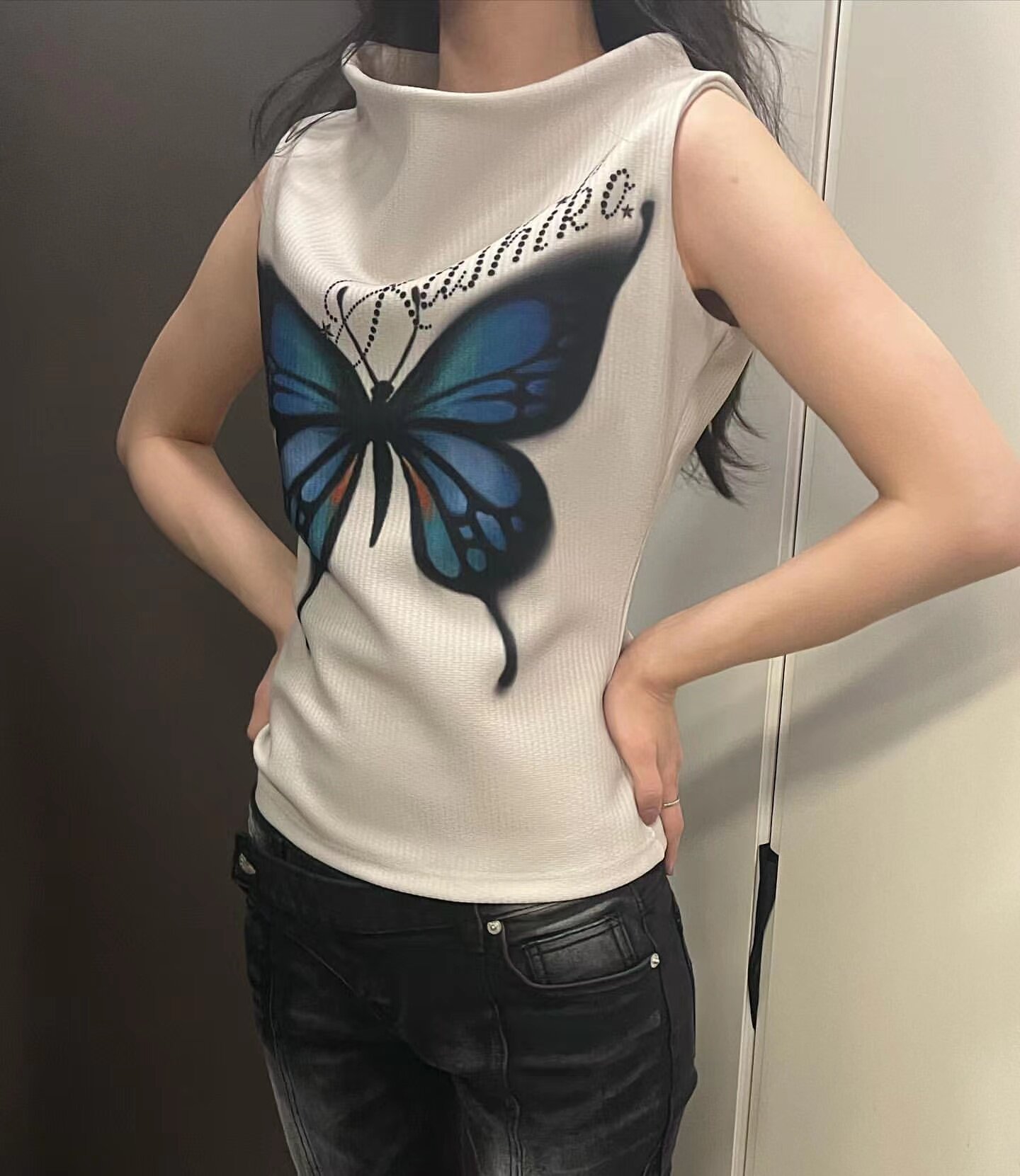 [Discount Clearance] Spot Kashiko Art Oil Painting Style Printed Small Stand Collar Millennium Retro Vest Multi-Color