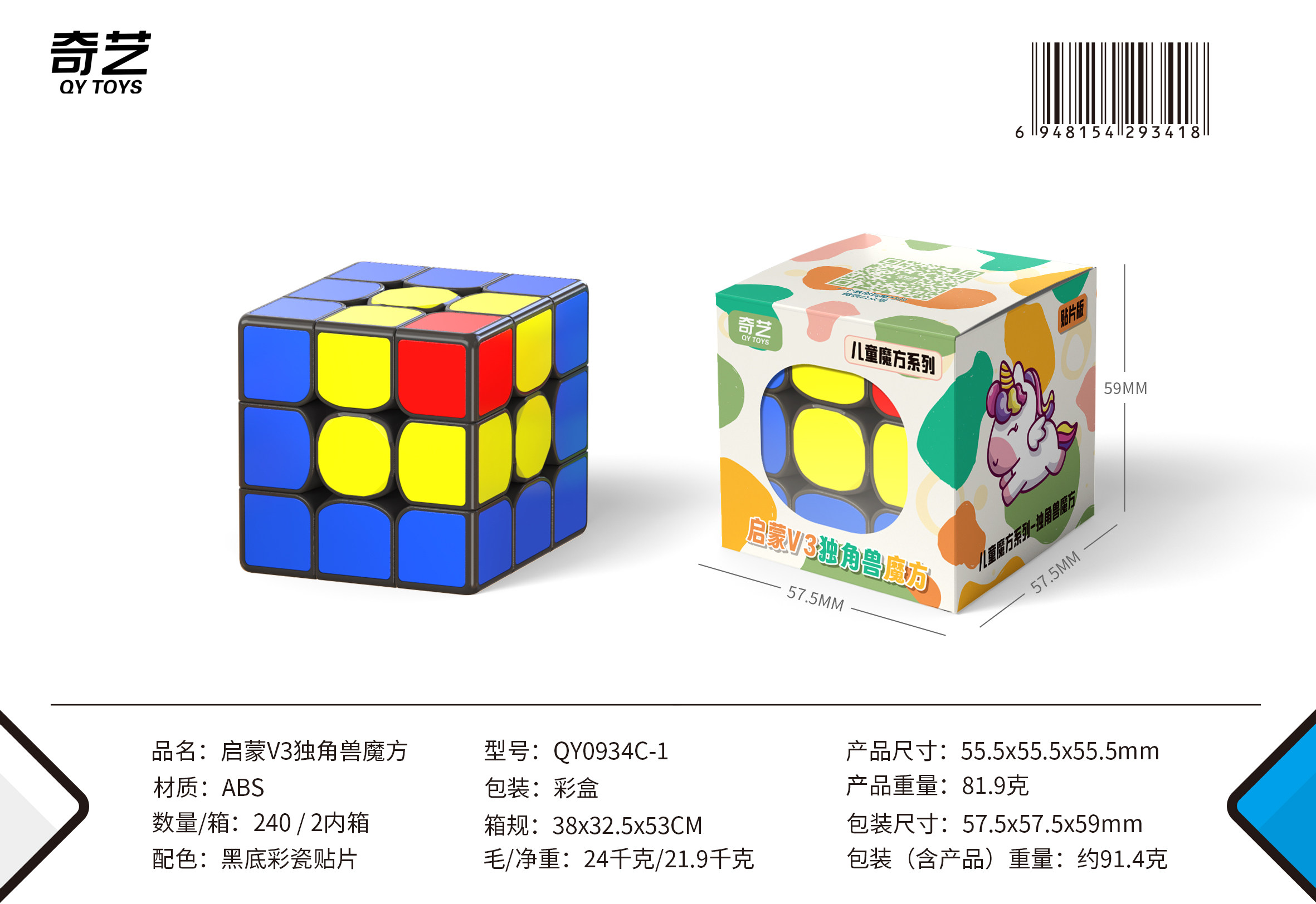 Unicorn Rubik's Cube Qiyi Woodpecker Rubik's Cube Third Level Entry Smooth and Stable Kindergarten Training Rubik's Cube Teaching Aids
