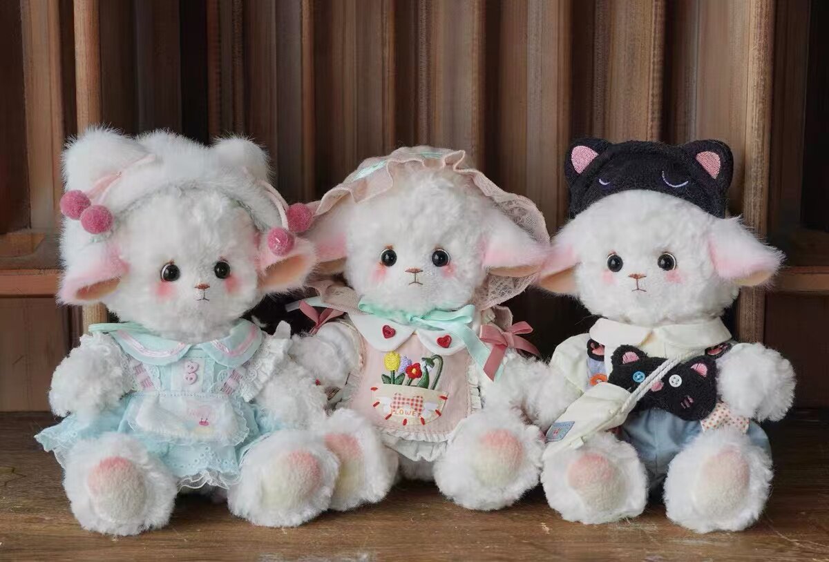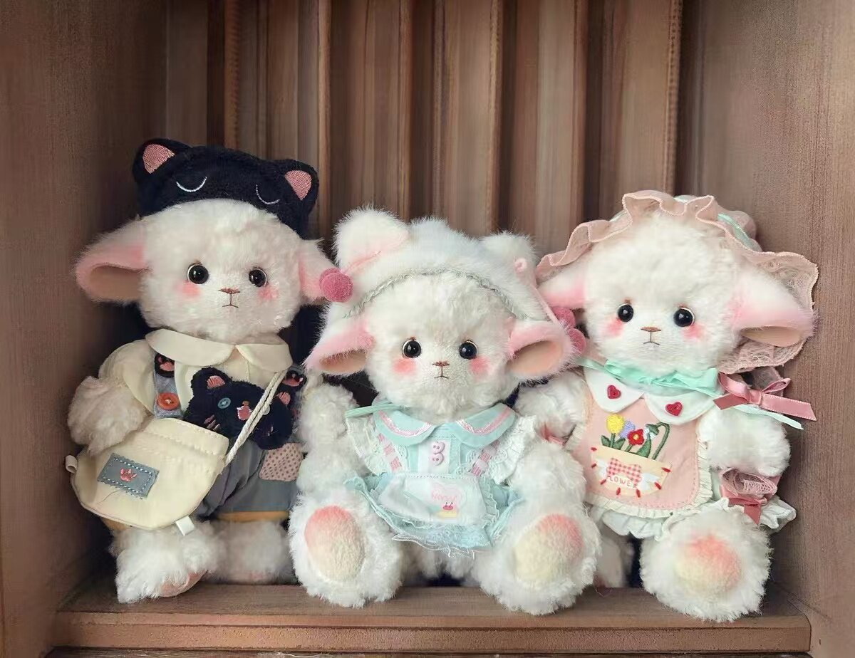 Color Classification Milky White 20cm,Strawberry Love Baby Clothes + Sleeping Sheep 20cm,Left One Tiffany Blue Suit + Sleeping Sheep 20cm,The Little Black Cat Set on the Left + Sleeping Sheep 20cm,Milk White 17cm (Product Upgrade to 20cm)