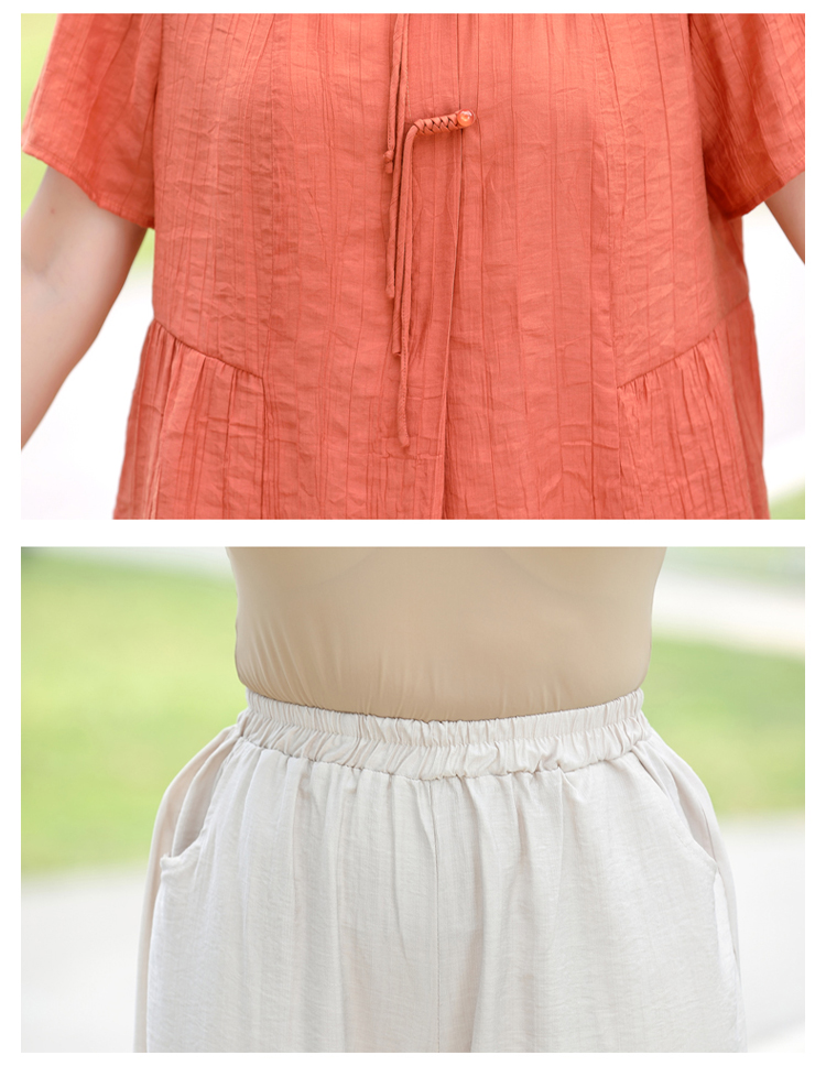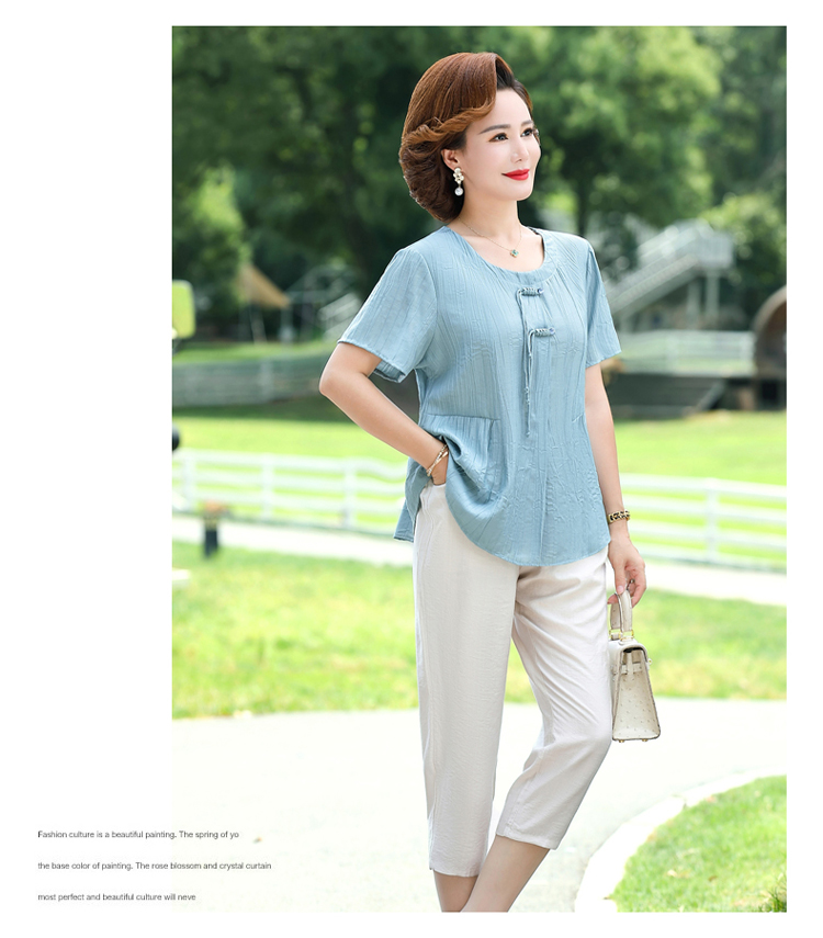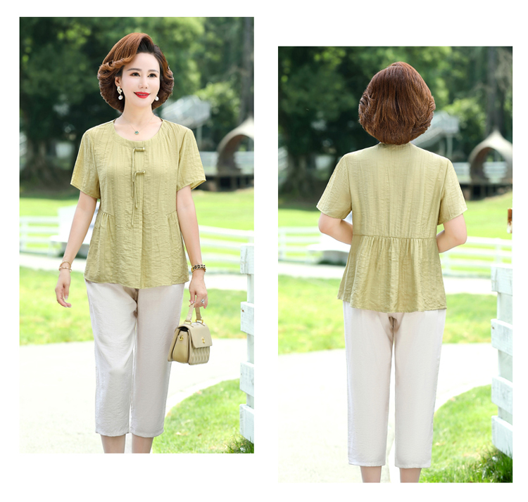 Casual and Versatile Summer Cotton and Linen Short-Sleeved T-Shirt for Petite Mothers, Thin Solid Color Loose Top for Middle-Aged and Elderly Women